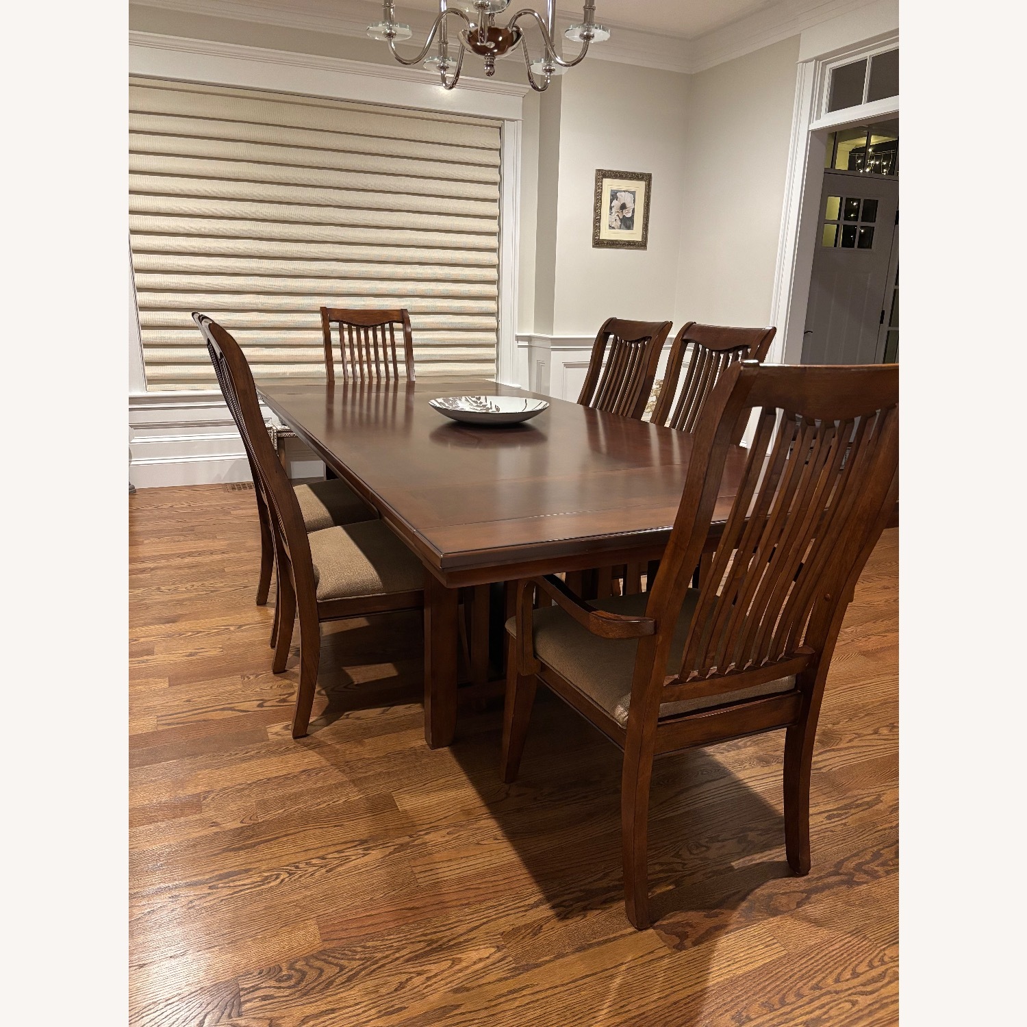 Seller's Notes:In great condition - a Jordan’s dining set I have cherished for many years; beautiful all wood and well-made table and chairs. The quality is impeccable. Looking for its new home. Table has two 12 inch leaves.