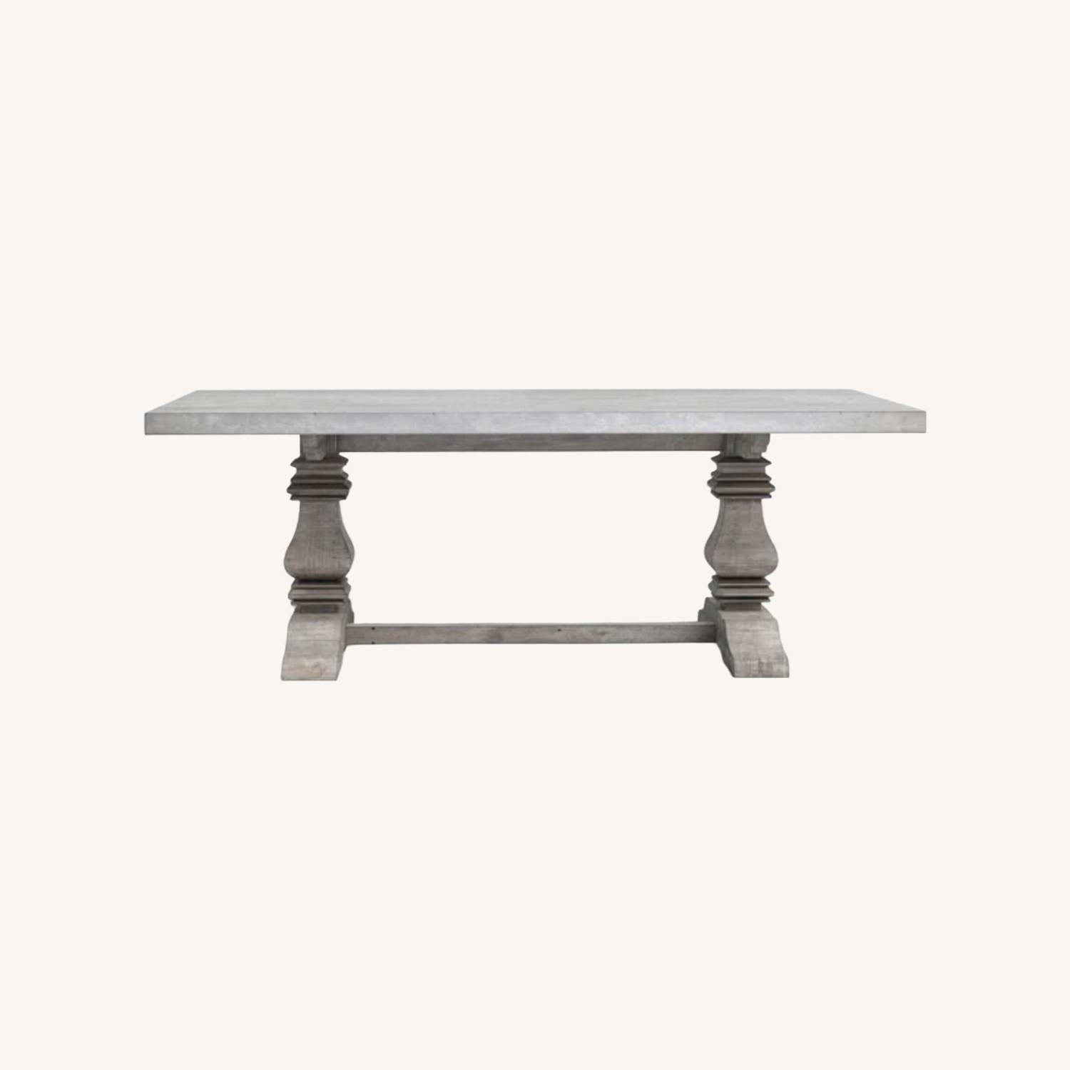 With its two tone grey finish, the Nelson Dining Table features a reclaimed pine wood base and concrete tabletop to create a dynamic piece. This table blends the unique character of reclaimed wood with the industrial element of concrete for a piece that is both handsome and durable. Seating up to six, this dining table features hand finishing to preserve the distinctive knots, grain patterns, and color of reclaimed wood.