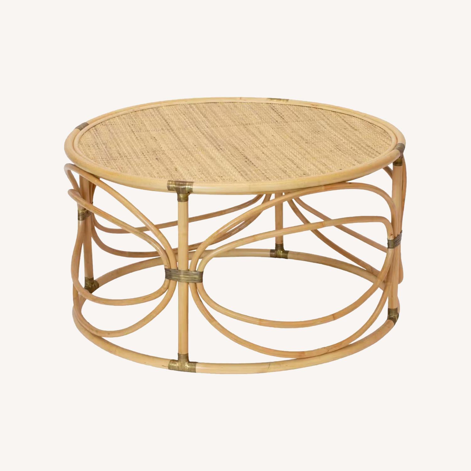 Opulence meets organic with this Art Deco inspired bent rattan coffee table, complete with a woven cane top and brass bindings. Natural beauty is on full display with the Audrey Coffee Table. Its retro charm is on full display with its open air design, and its brass bindings give it an unexpected pop of glamour. Perfect for boho and globalist style lovers alike. Details and product care +