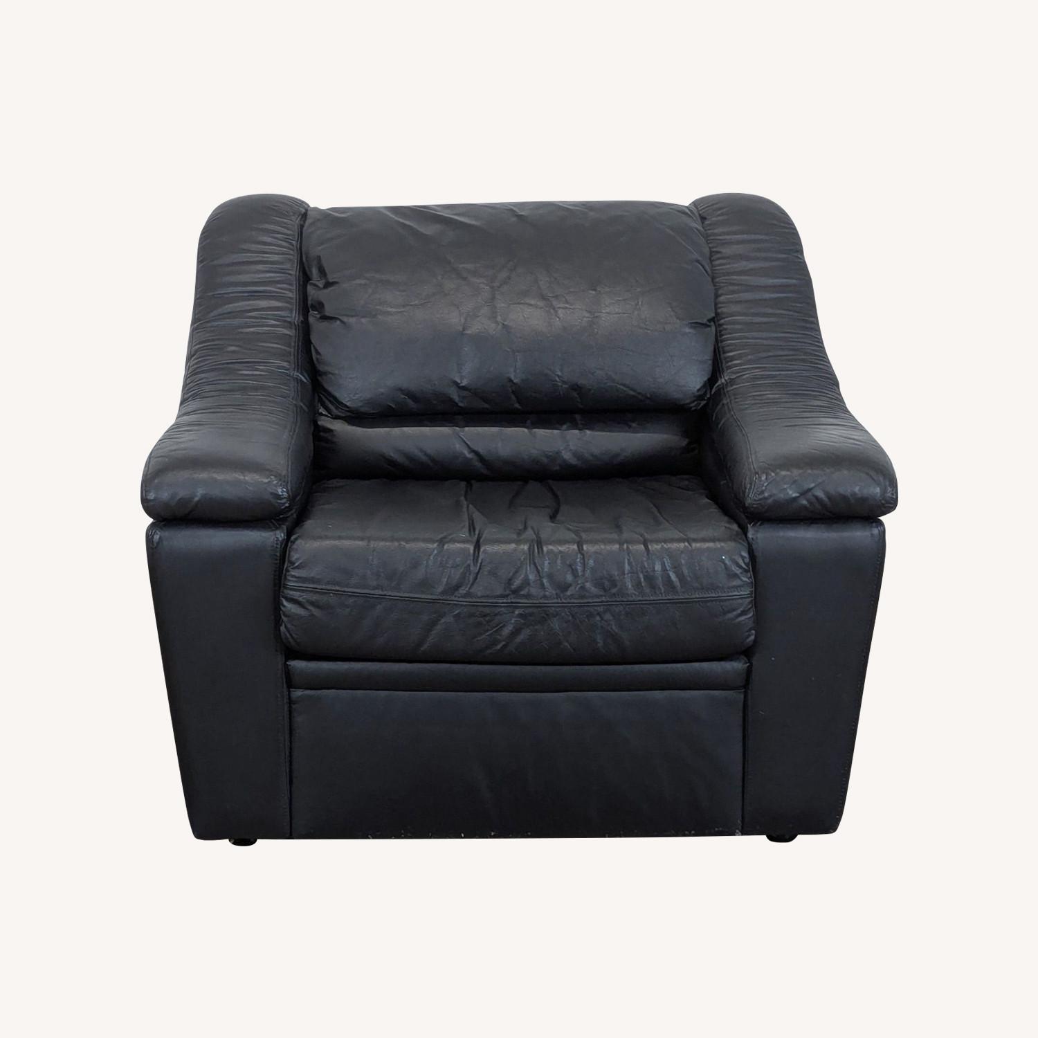 Seller's Notes:Plush cushions with black leather upholstery.