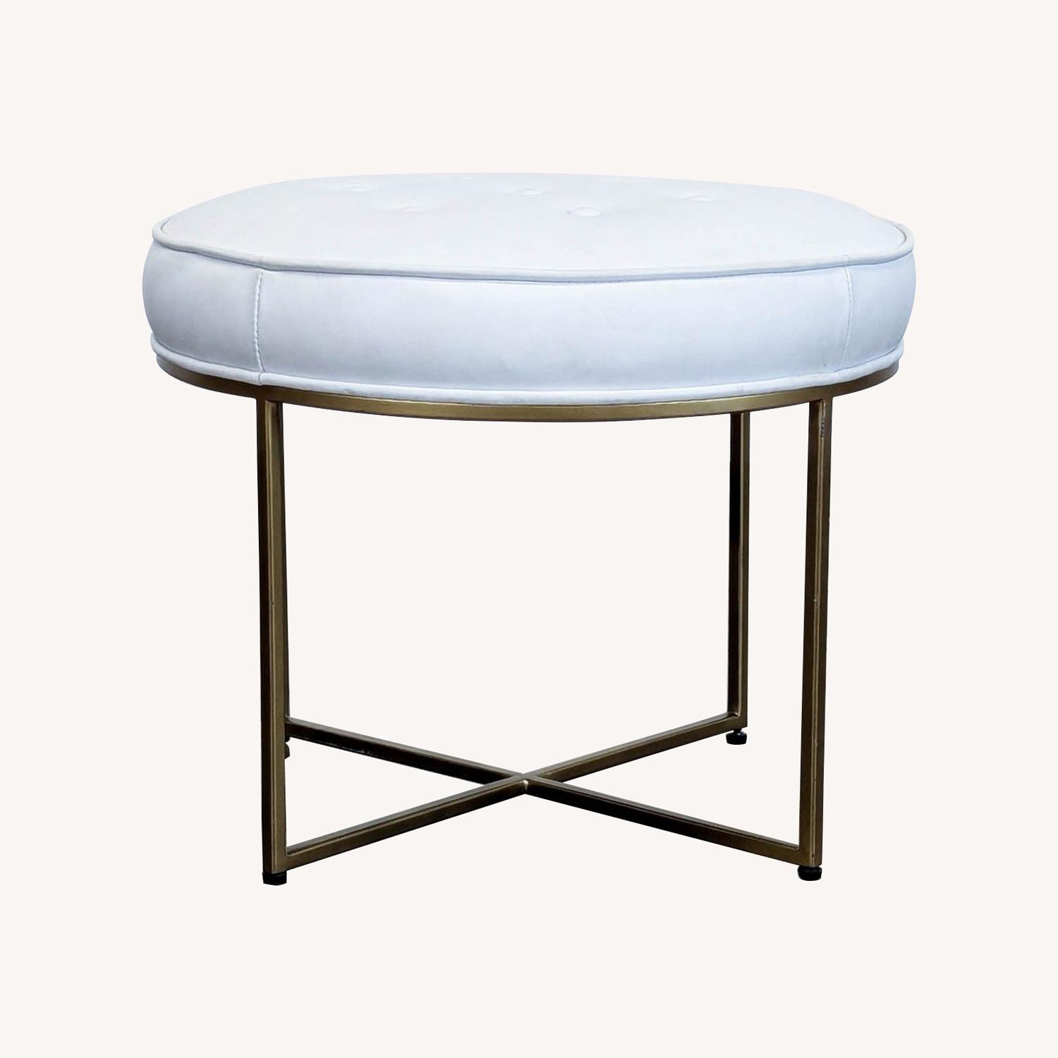 Leather Button Tufted Ottoman on Metal Base