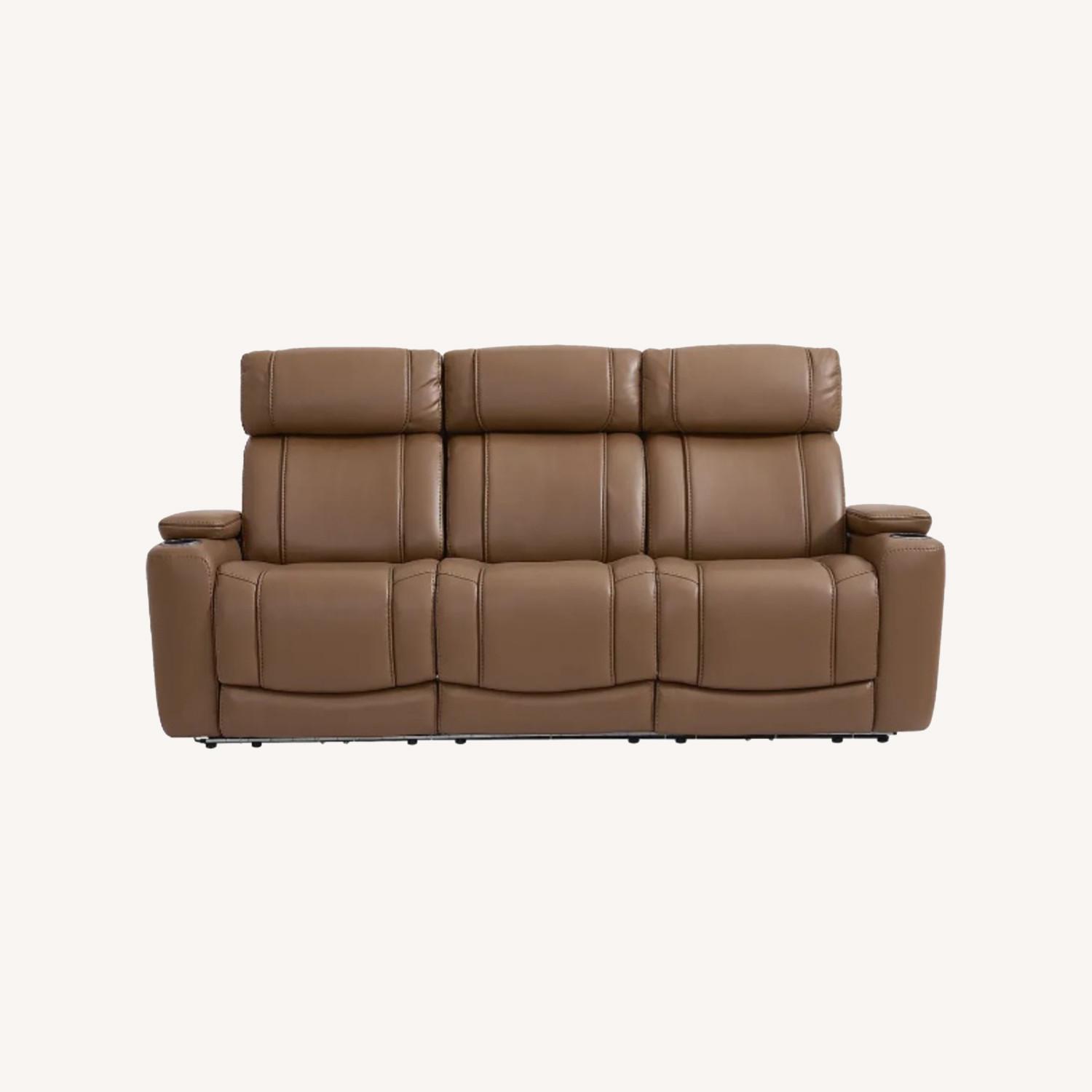Seller's Notes:Brand new, moving and can’t take with! Rooms to go power reclining couch in soft saddle leather. Cup holders, lighted center console, usb charger, all the bells and whistles!