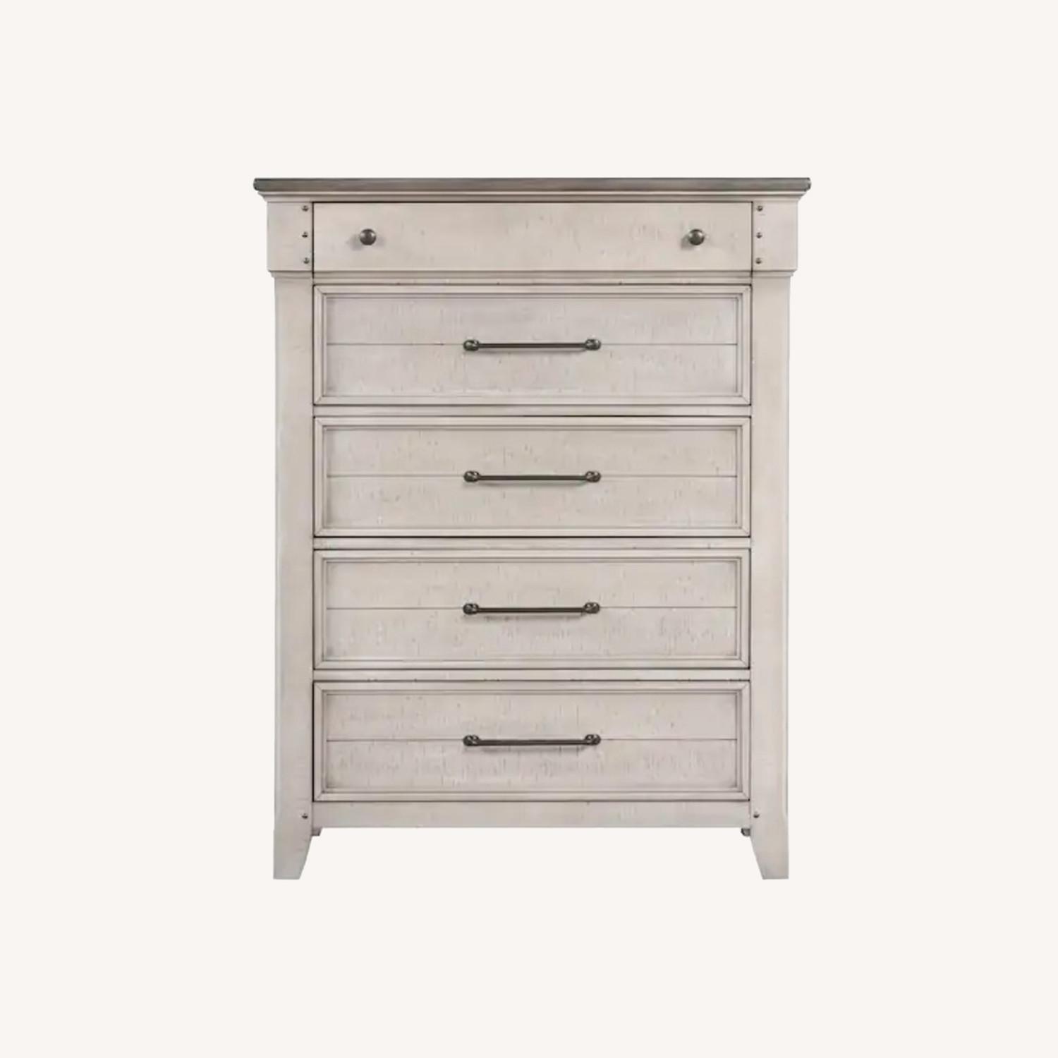 Meet the Walcott 5-Drawer Bedroom Chest by Roundhill Furniture. Elevate your bedroom with this exquisite piece that combines functionality and style. The chest is constructed with a rubberwood frame that provides exceptional stability and durability. The heavily distressed weathered dusty-taupe finish adds a touch of sophistication, while the saw marks create an appealing and farmhouse look. Complete with antique pewter handle and pin nail head accents, make this chest offers both modernity and chic feel. With five spacious drawers, it adds ample storage for all your essentials, keeping your belongings organized and easily accessible.