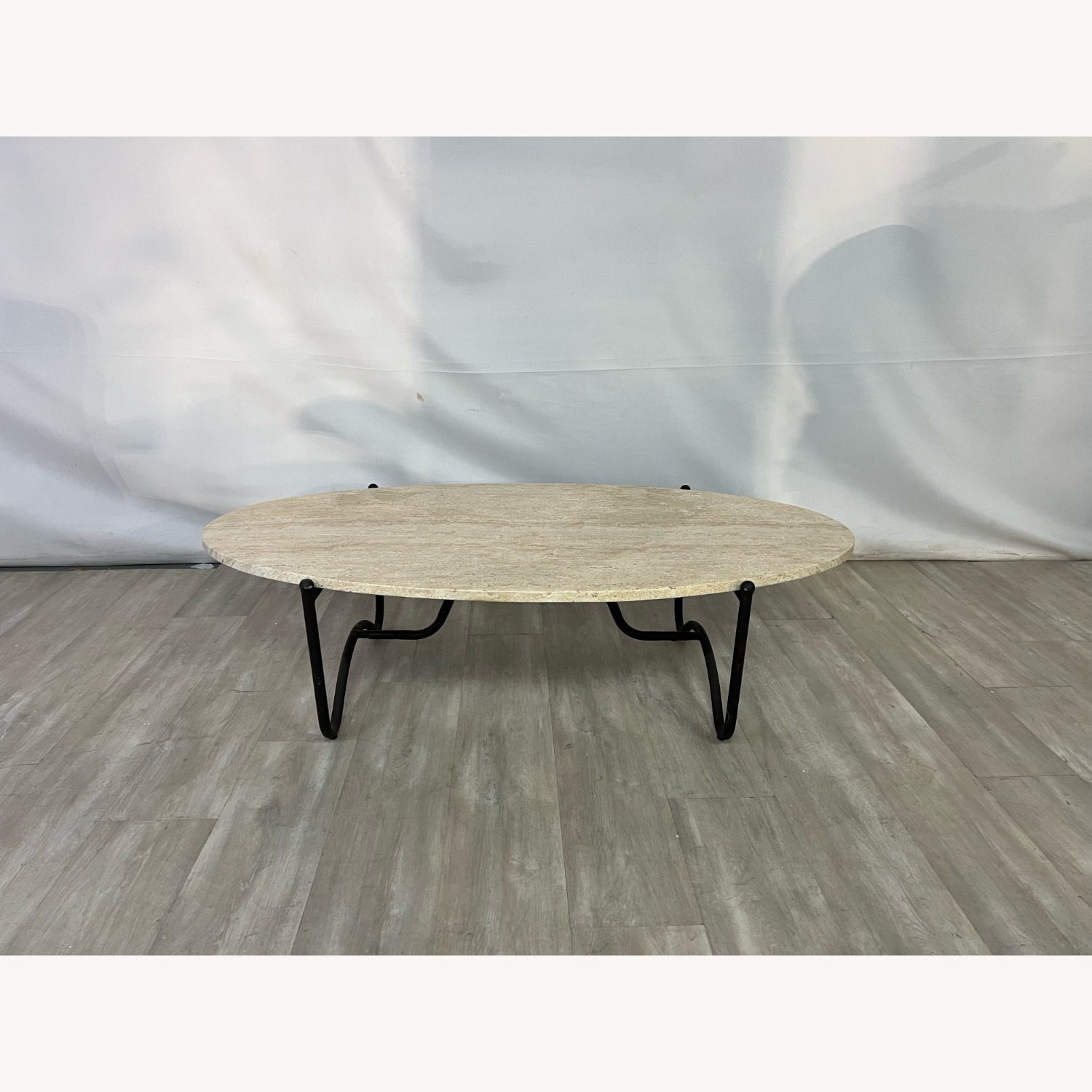 Used Lulu & Georgia Peggy Travertine Top Dining Table for sale on AptDeco