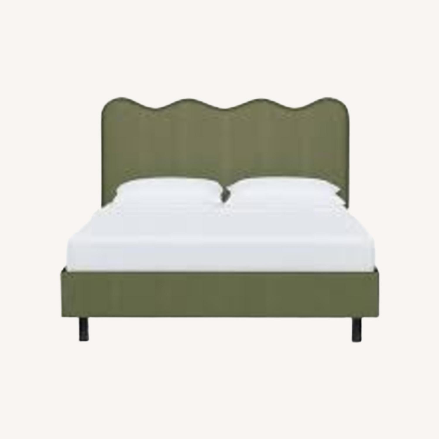 Seller's Notes:Great condition current Lulu & Georgia Clementine king-sized bed in discontinued green velvet. There are some loose threads/fabric on the sides, which are not noticeable.