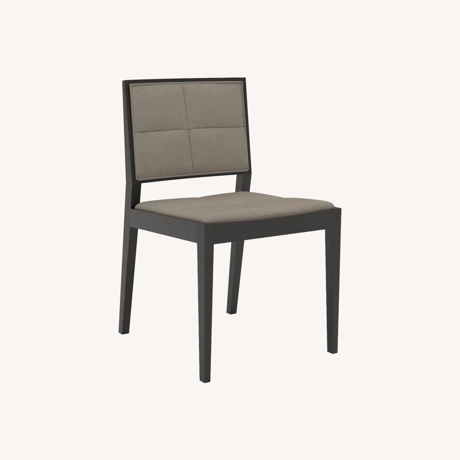 Seller's Notes:Designer European Line from Spain. Malina series by Andreu World. Made of Solid Beech Wood. New Out of Box. Client over bought for project. Expresso Wood finish with Bone Tan faux Leather back and seat. Rare feature- Stackable Wood chairs. Set of 2.