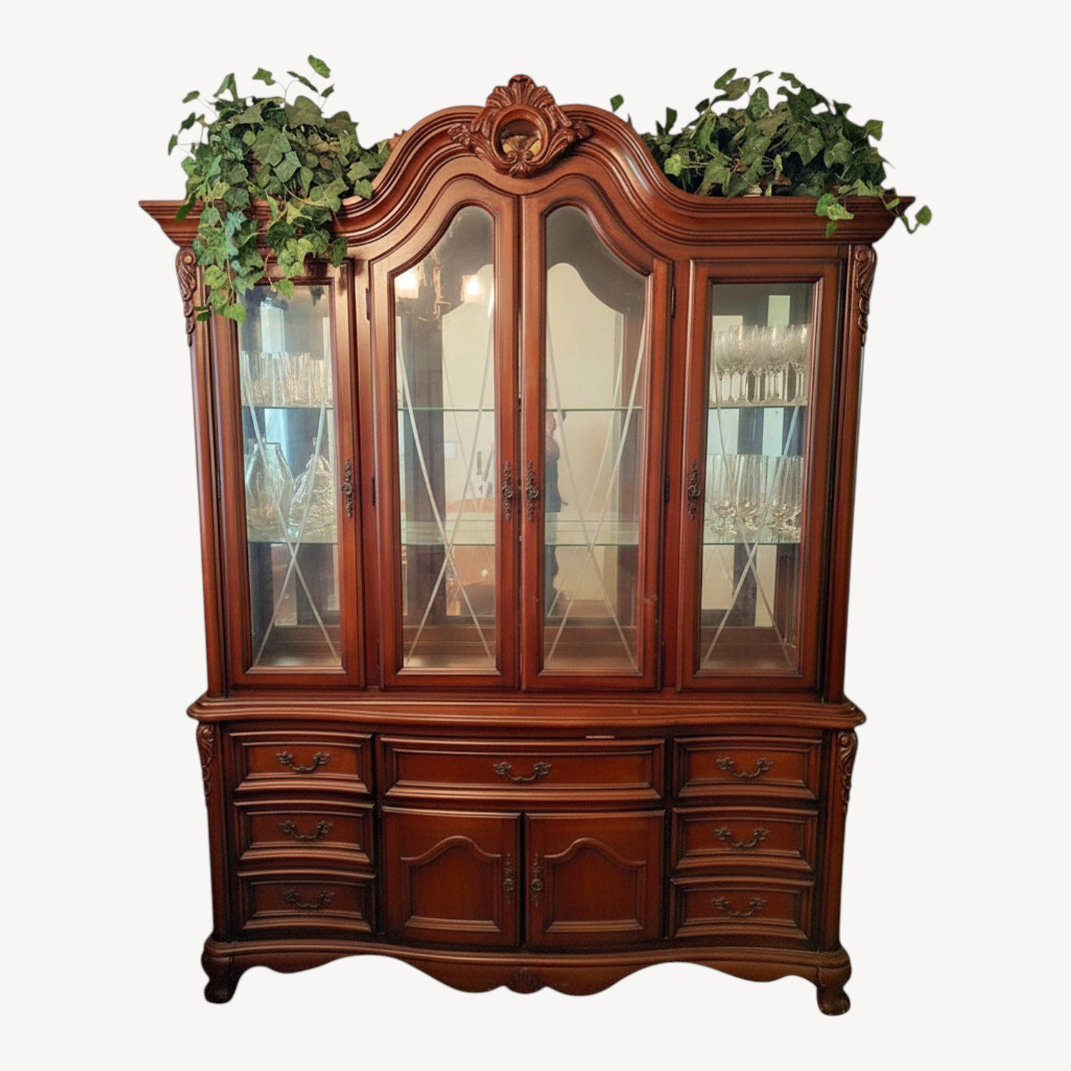 Seller's Notes:This buffet is a set with Dining set also being sold. It has inside lighting with six drawers middle storage.