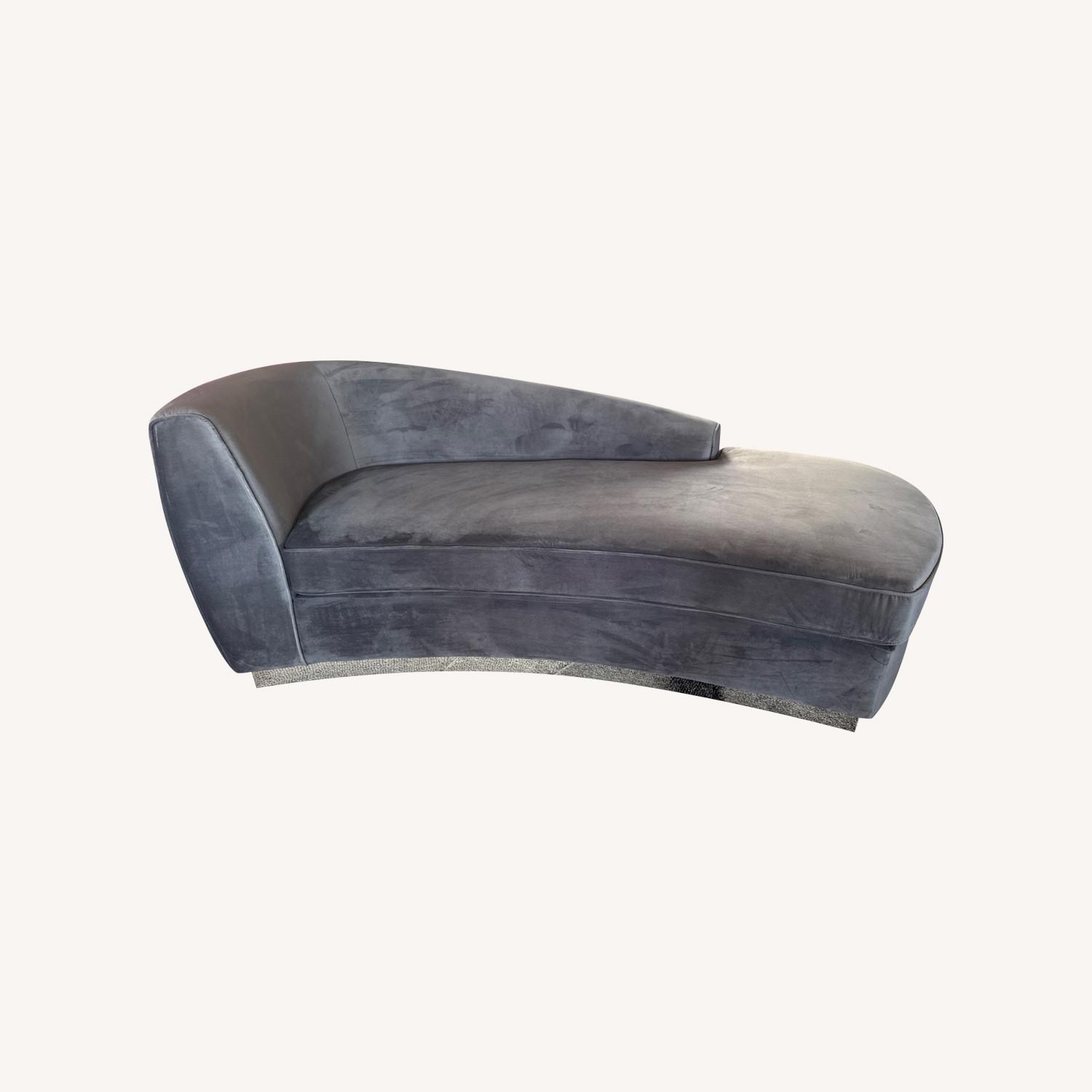 The perfect mix of velvet and stainless steel comes to life in your space with this Julian Chaise. This bold velvet chaise comes upholstered in rich, sumptuous-to-the-touch velvet to make a fashionable statement in your space. The curved back design lends it a modish touch, and the stainless steel trim around its base adds to its glitzy appeal. Stage this chaise alone or with other pieces in the Julian collection.