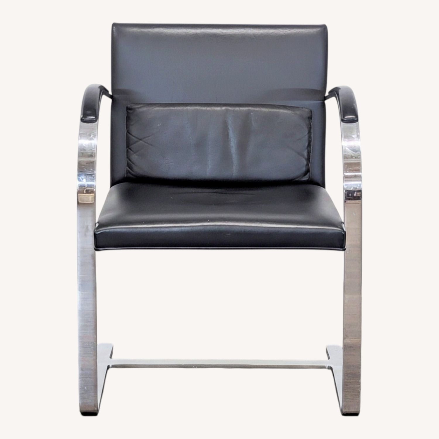 Seller's Notes:This stylish lounge chair features a sleek black leather seat and backrest with a matching cushion for extra comfort. The sturdy chrome frame gives it a contemporary look and solid support. Perfect for any living room, office, or lounge area.