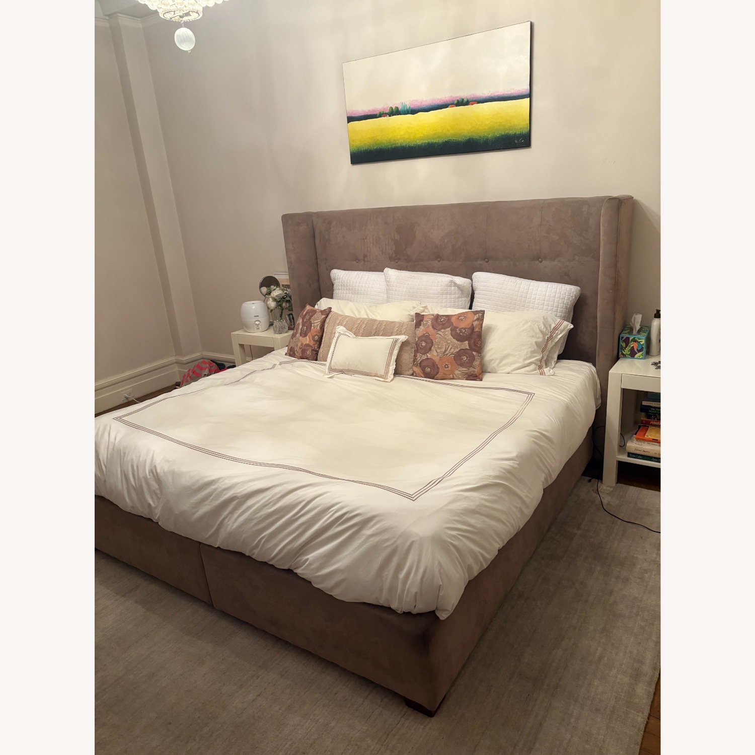 Seller's Notes:Mitchell Gld + Bob William Celina Floating Rail bed (King) Bed in Sand Performance Microsuede