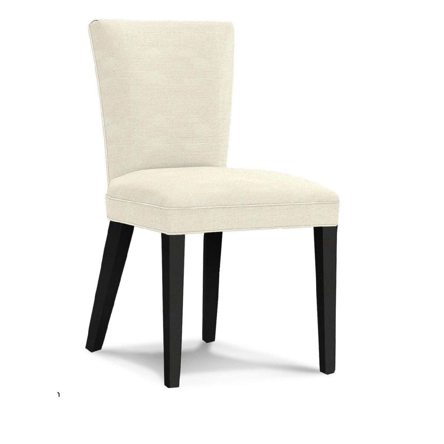 Beautifully shaped, this dining side chair features a comfortable curve to its tapered back. The chair rests on tall, slender wood legs; back legs have a gentle curve. For true dining comfort, encircle a table with a mix of lushly upholstered Sidney sides and matching Sidney armchairs, which feature a cool cutout at the arms.