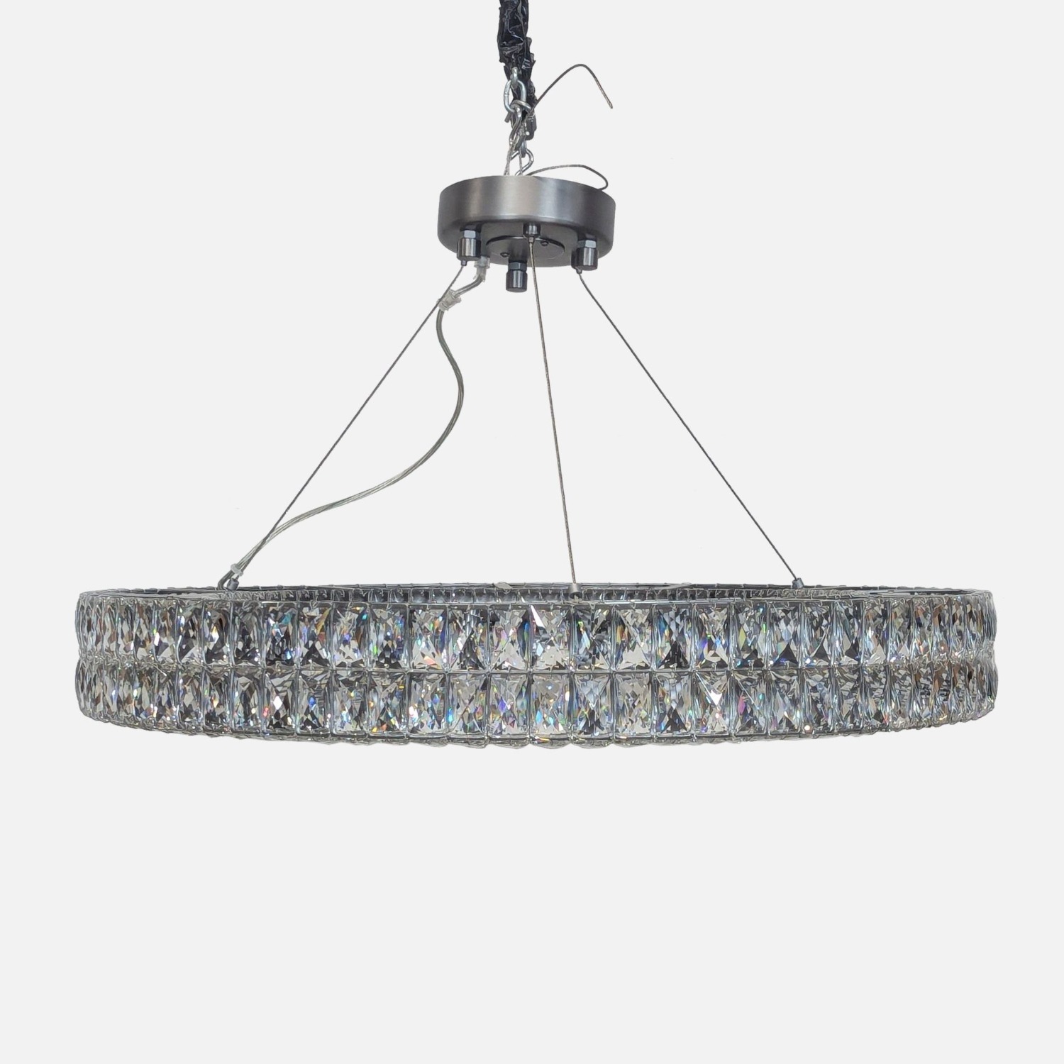 Seller's Notes:Circular crystal and metal ceiling light with adjustable length cables.