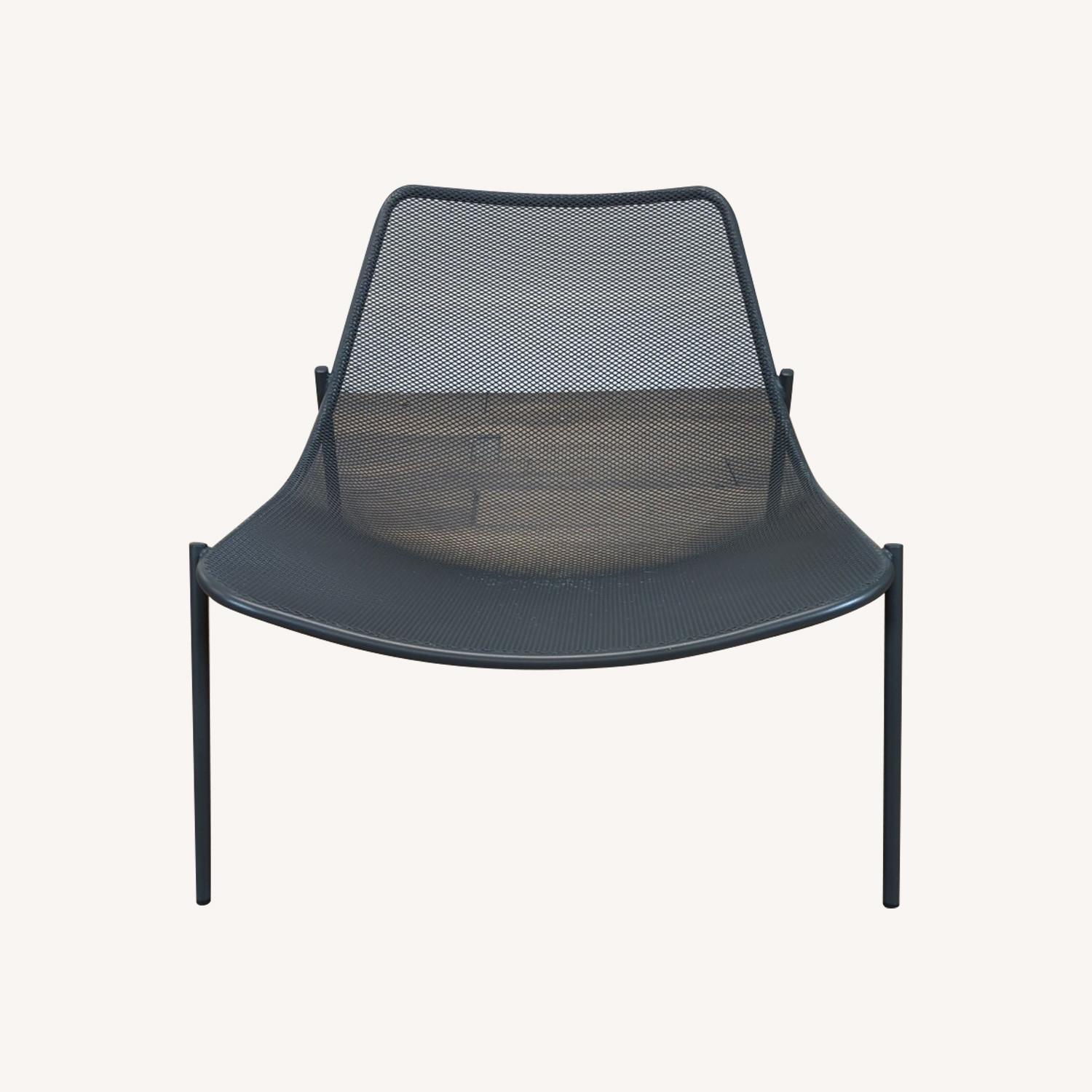 Seller's Notes:This chair features a distinctive curved shape and an airy structure created by a metal mesh seat and backrest set within a steel tube frame.