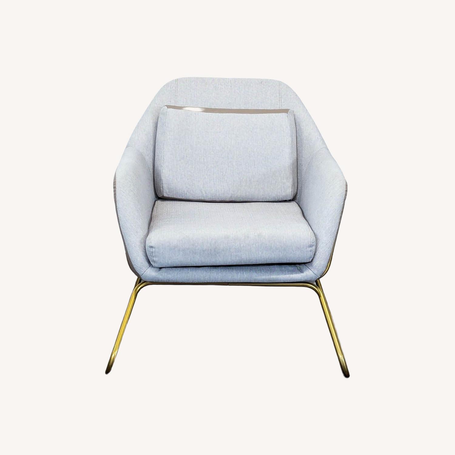 Seller's Notes:This modern lounge chair features a sturdy gold metal frame and soft neutral cushions for added comfort. Its sleek design fits well in any living room, office, or lounge area. The supportive back and wide seat make it perfect for relaxing or reading. Simple and stylish, it blends easily with any decor.