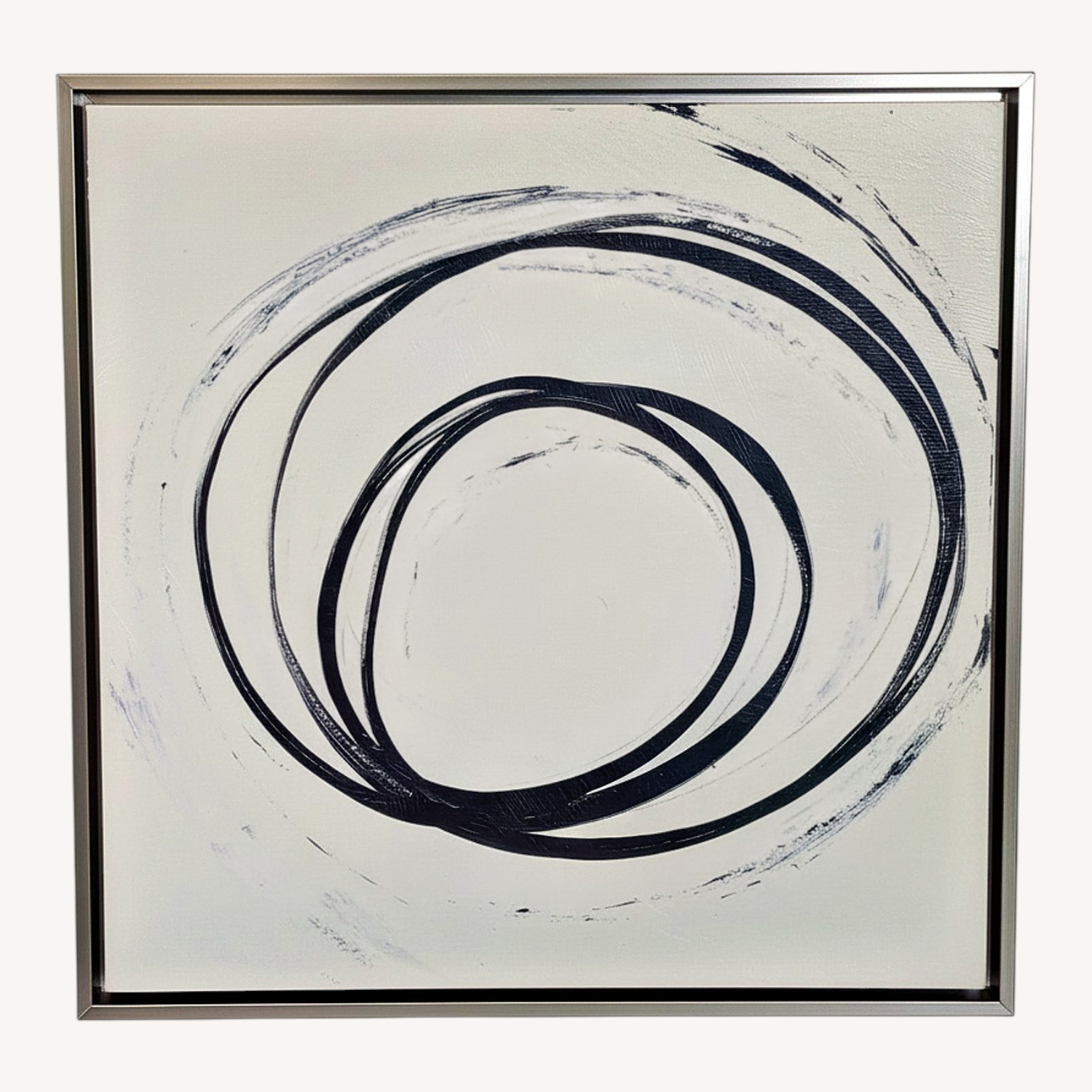Seller's Notes:This is a modern abstract painting featuring bold black circles on a white background. The artwork comes in a sleek frame, perfect for contemporary or minimalist spaces. The piece is ready to hang and adds a stylish, artistic touch to any room. Great for home or office decor.