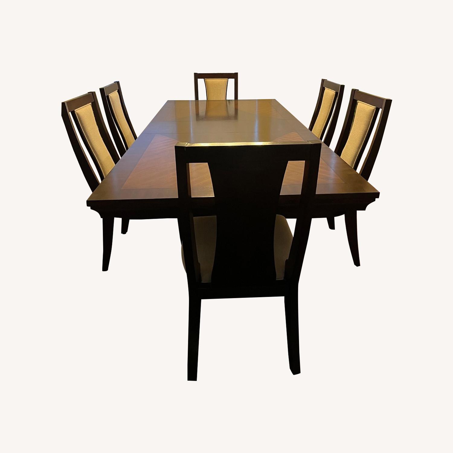 Seller's Notes:Excellent condition dining set with 6 chairs. The table comes with leaves that extend 16 inches, bringing the length to 90 inches.