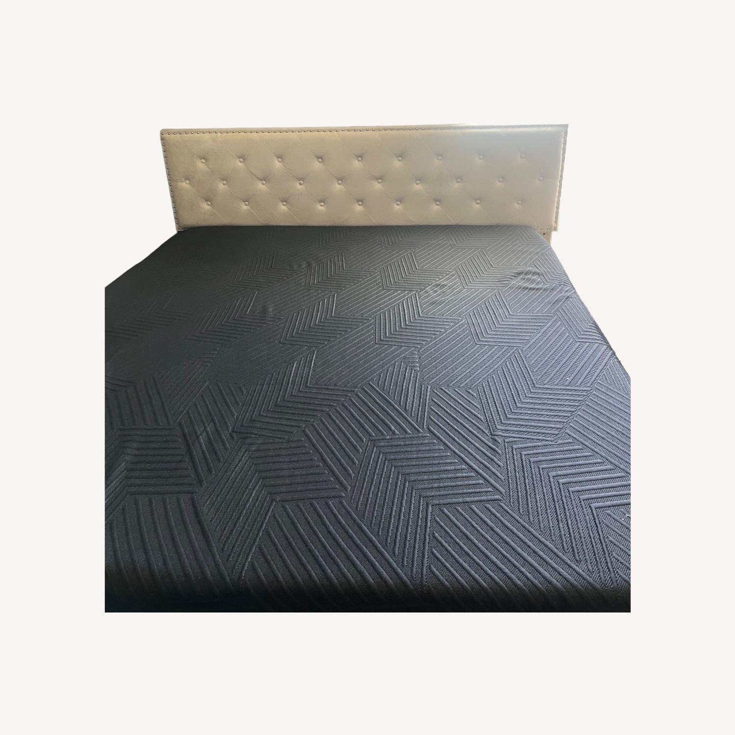Used Beige Upholstered Bed W Square Button Tufting for sale on AptDeco