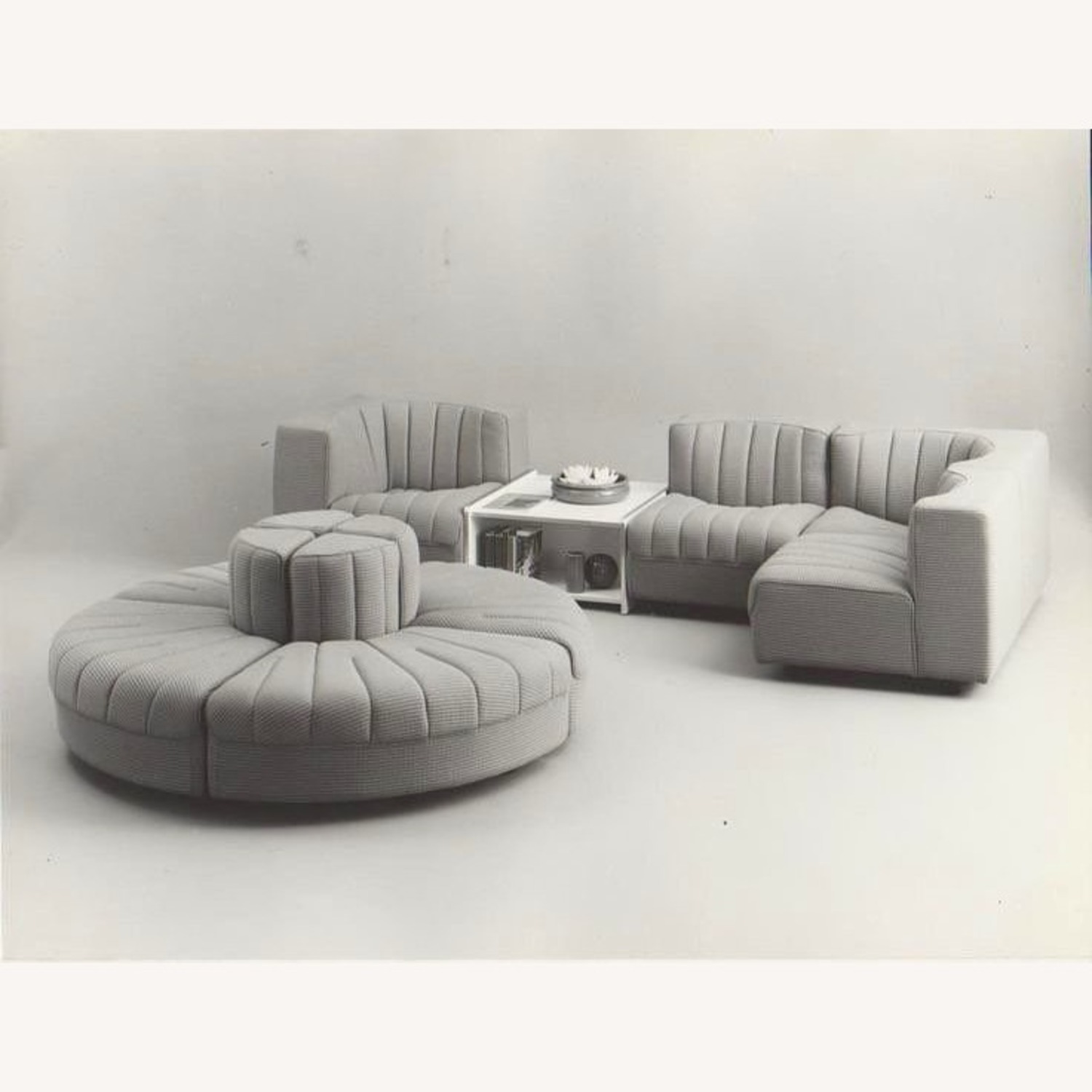 Seller's Notes:Beautiful ‘Novemila 9000’ modular sofa in B&W woven fabric, designed by Tito Agnoli for Arflex Italy in the 1970s. This sofa consists of 10 elements, of which one corner. The interesting stitching and curved seats add to the overall look and comfort of the sofa. The individual pieces can also be used as lounge chairs, offering flexibility and versatility. Height: 22.84 in (58 cm) Width: 25.99 in (66 cm) Depth: 32.68 in (83 cm) Seat Height: 13.78 in (35 cm) 1 piece not pictured in main image (see 2nd image) Wear consistent with age and use. Dust cover/cambric needs to be replaced on a few of the pieces.