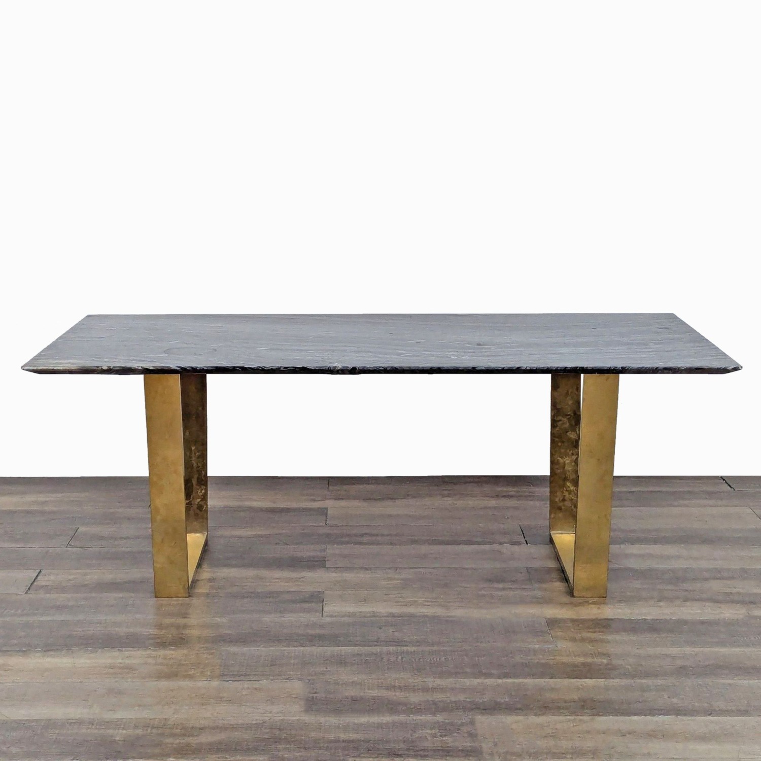 Seller's Notes:Black Wood Vein marble top on steel sled legs in a brushed gold finish