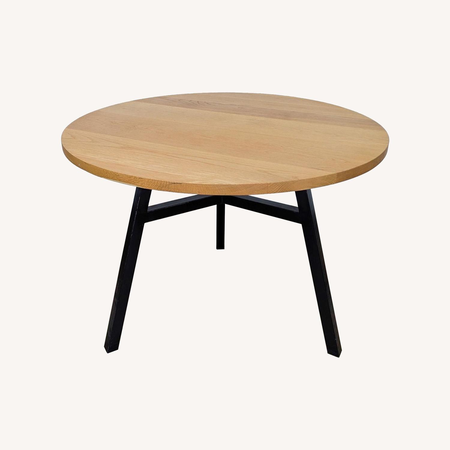 Seller's Notes:Solid white oak top with a natural oil finish on a natural steel base with a clear satin finish
