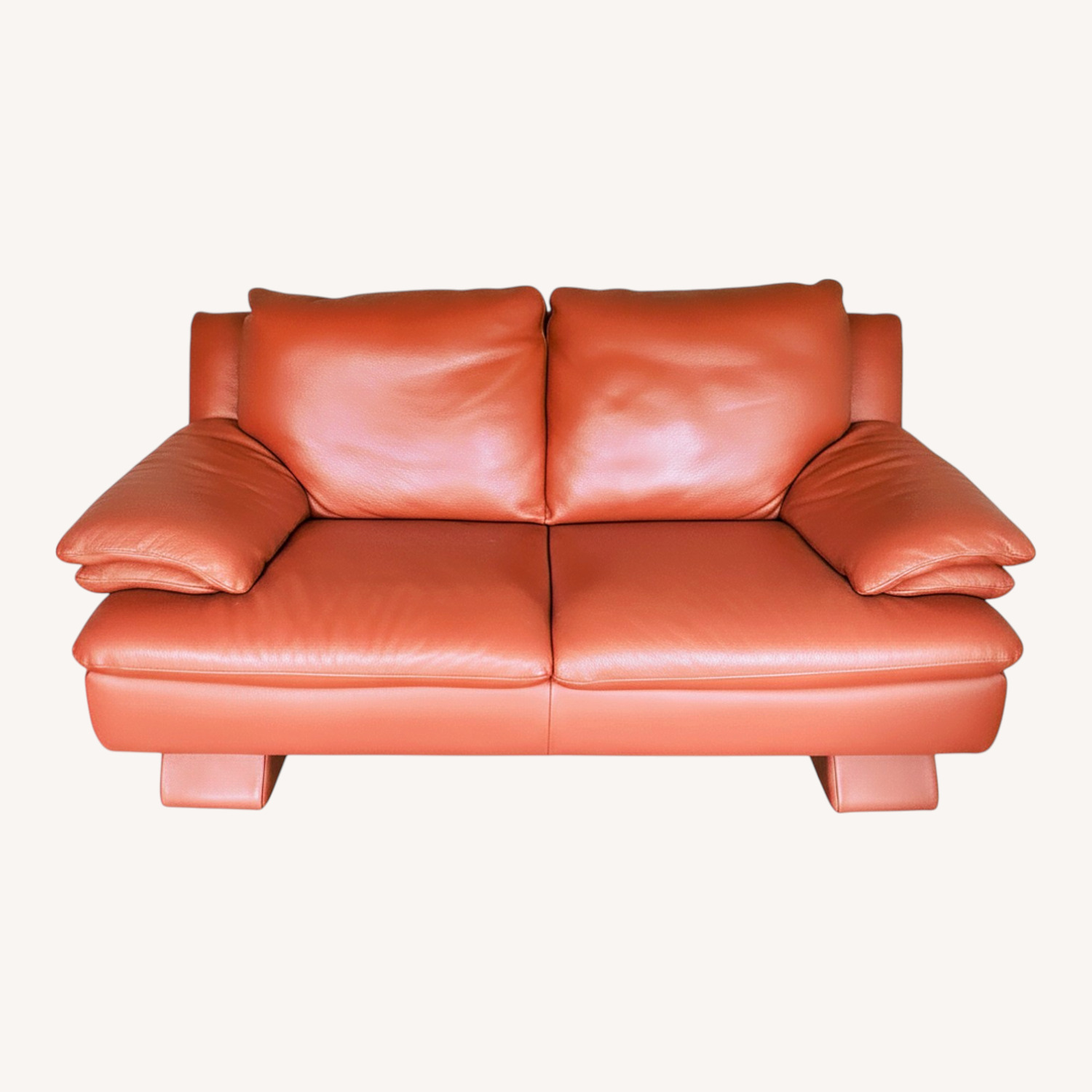 Seller's Notes:Purchased in Germany and brought to US when I moved back. Reputable leather sofa store in Ramstein had these on sale and they were small enough for my apartment. They are both the same height and width but one is 64” long and the other is 72”. I have thoroughly enjoyed them. They are comfortable and the occasional guest has slept there without complaint. The leather has held up very well, no tears scratches of any kind. Beautiful deep orange shade popular in Germany. No fading.