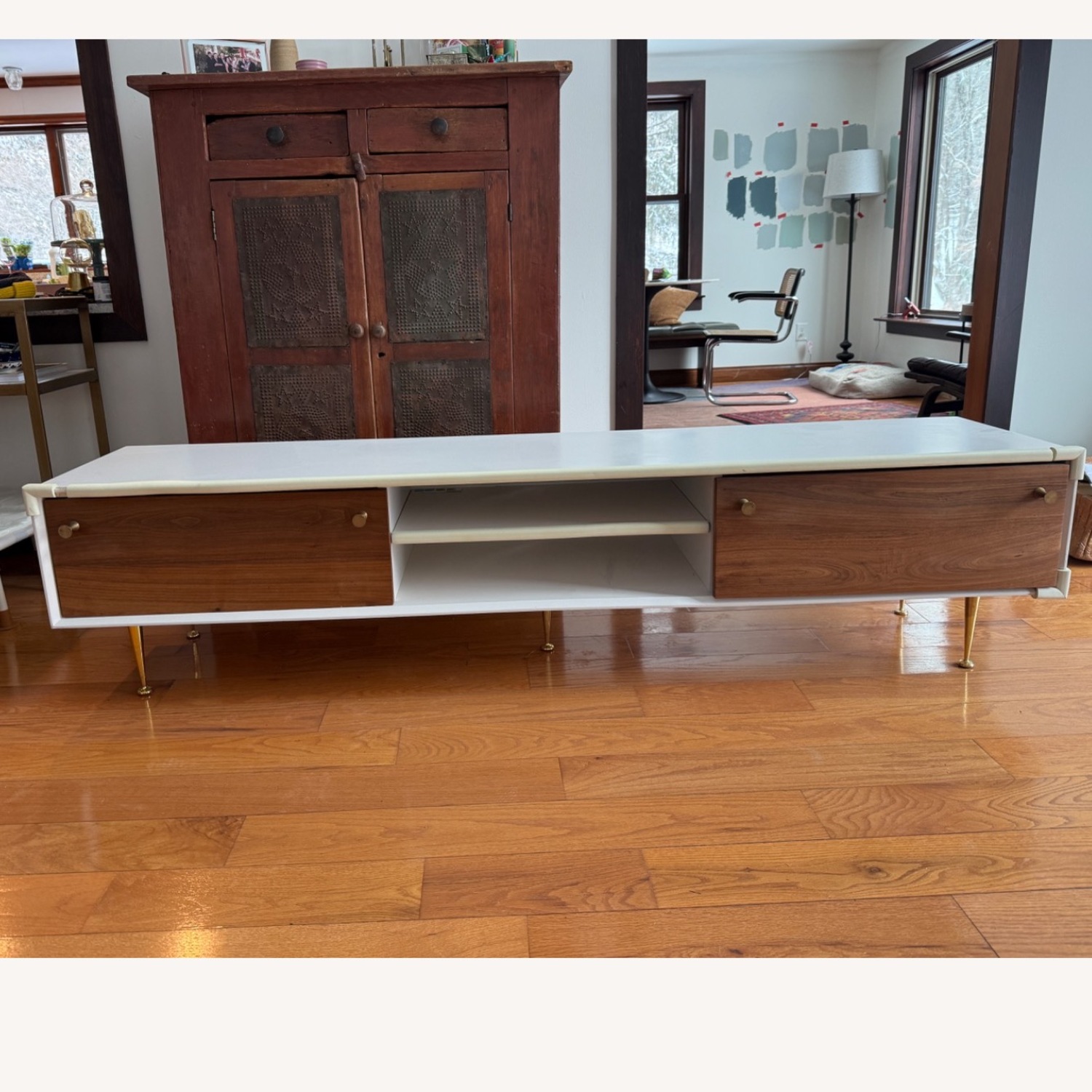 Seller's Notes:This was purchased from HD Buttercup, a California based furniture store well known for its luxury brand designs. We believe this is an Organic Modernism TV / media console. There are a couple of scratches that are fairly unnoticeable on the top and on the brass knobs as pictured. The brass knobs have developed slight patina overtime. Otherwise kept in really good shape! We currently have a foam childproofing strip on the edges that is removable. I’m happy to remove it before you pick it up /get it delivered but wanted to get this listing up ASAP. We just moved and this does not fit in our new living space.