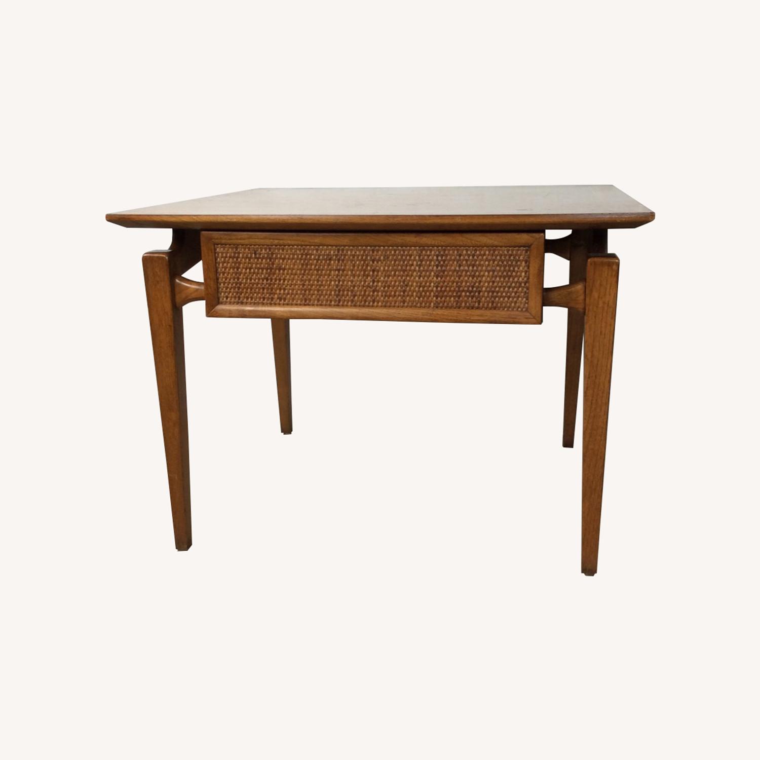 Seller's Notes:This pair of mid century modern end tables by Lane Furniture features hardwood construction, original walnut finish, single dovetailed drawer with caned front, and tall tapered legs. Dimensions: 28w 25d 20.5h Condition notes: Original walnut finish is in excellent condition with only minor scuffs, slight scratches, and small edge dings consistent with age and regular use. The drawers open and close with ease. Tall tapered legs are sturdy and solid. There is one small repair on the underside of the table where the wood has been glued but it is not structural, and not noticeable to the naked eye. 8.5/10