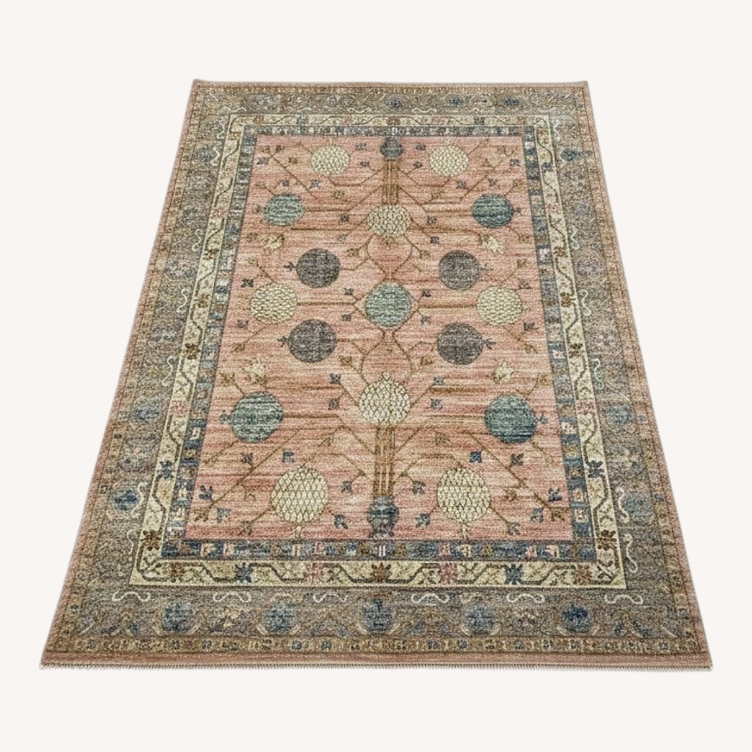 Pakistani Ushak Rug, Blush Beige & Blue, 8x10 - image-1