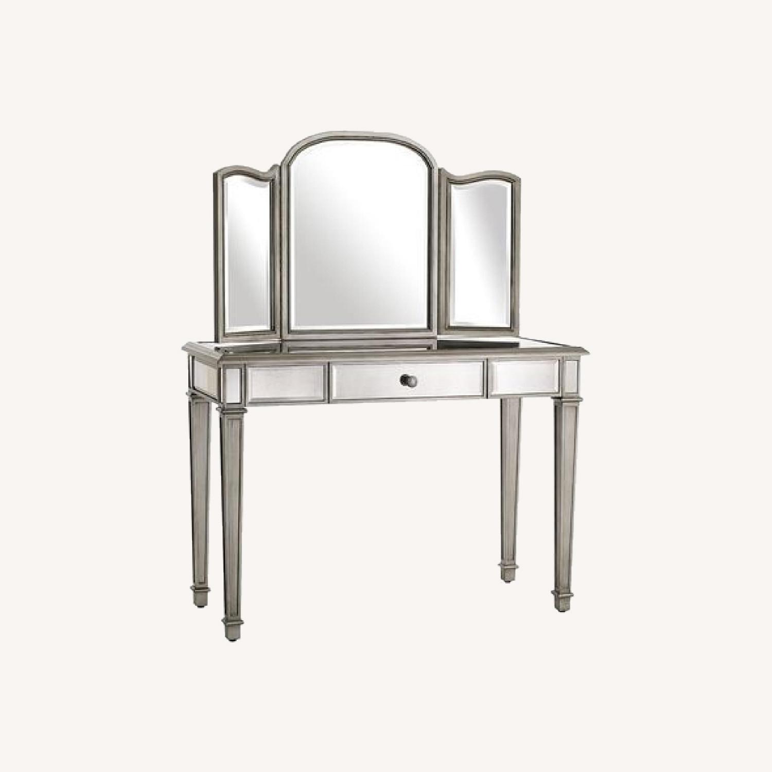 Seller's Notes:As glamorous as any star from Hollywood's Golden Era, yet as practical as we can make it, our Hayworth Vanity is all about functional fashion. Handcrafted, hand-painted and covered with bevel-cut mirrored glass, it can serve as dressing table or small desk. Add the folding mirror, available separately, and you have the perfect buddy picture. A Pier 1 Imports exclusive.