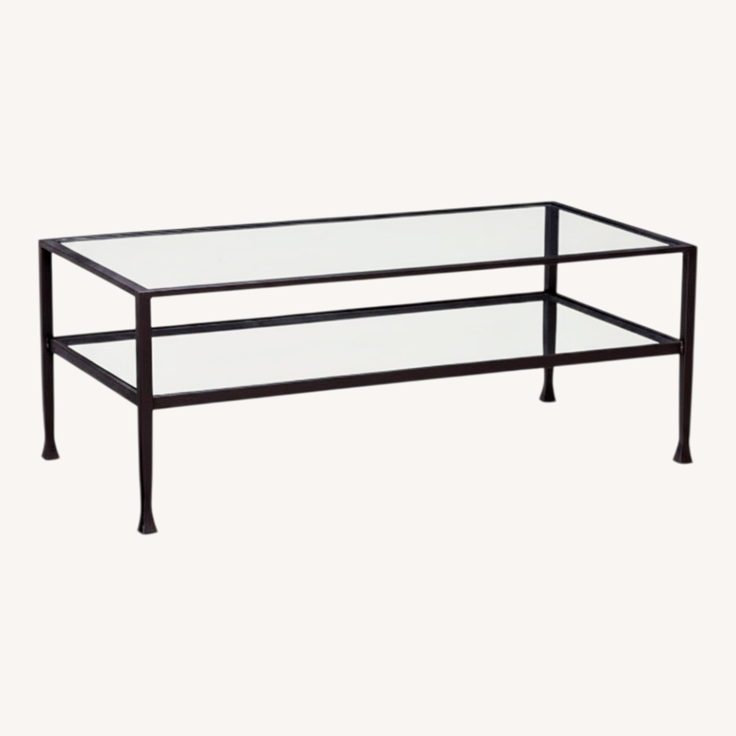 Seller's Notes:Each piece in this collection has hand-hammered iron frames inset with tempered glass. Perfect for showcasing collectibles or displaying books, this coffee table has streamlined shapes that work well in smaller spaces.