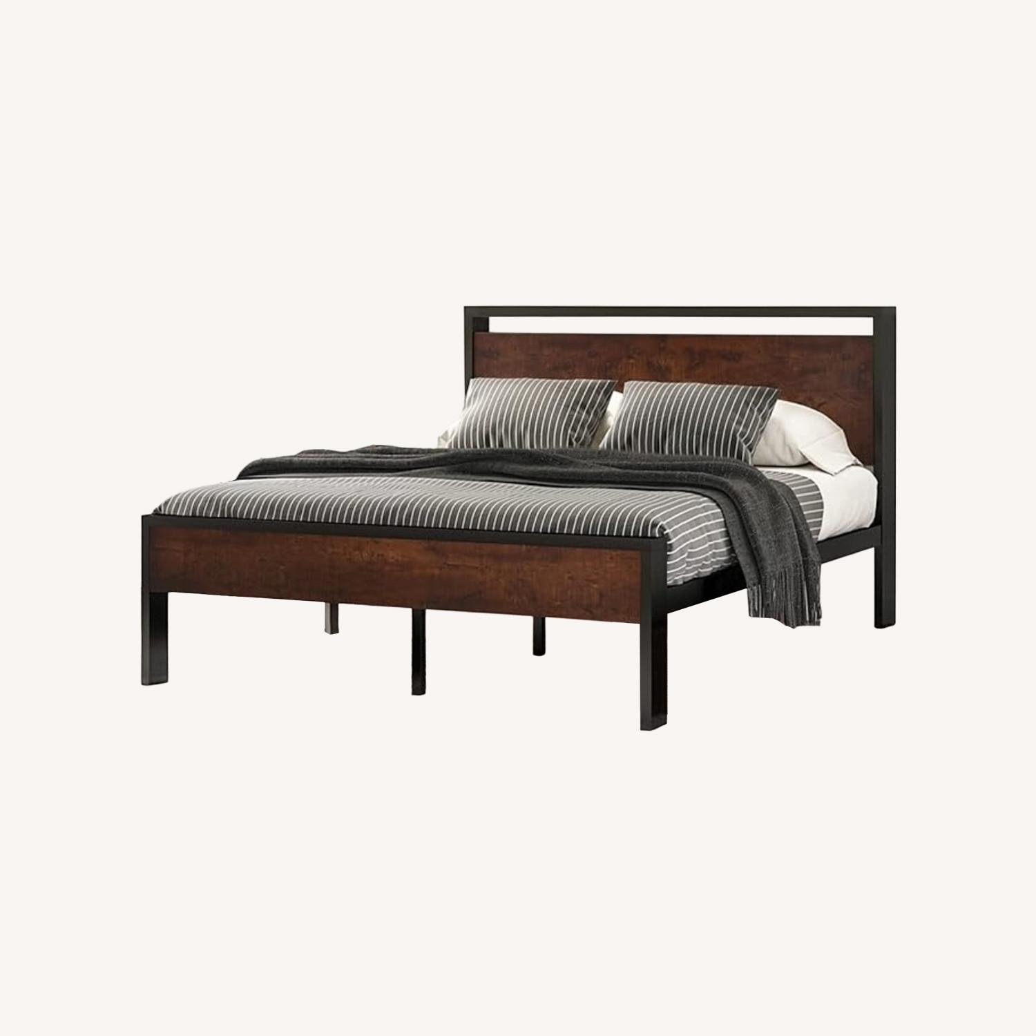 Seller's Notes:Bedframe: 14 Inch Queen Size Metal Platform Bed Frame with Wooden Headboard and Footboard,