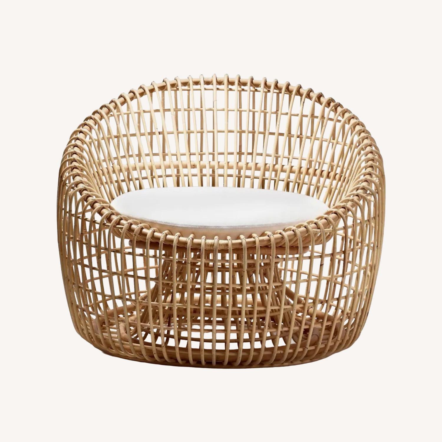 Seller's Notes:Handwoven of sustainable natural rattan, Cane-line's Nest Chair is another example of their beautifully sculptural, beautifully functional furniture. Light in weight and easy to move around, we love it in a sunroom, or covered porch. Cushion included.