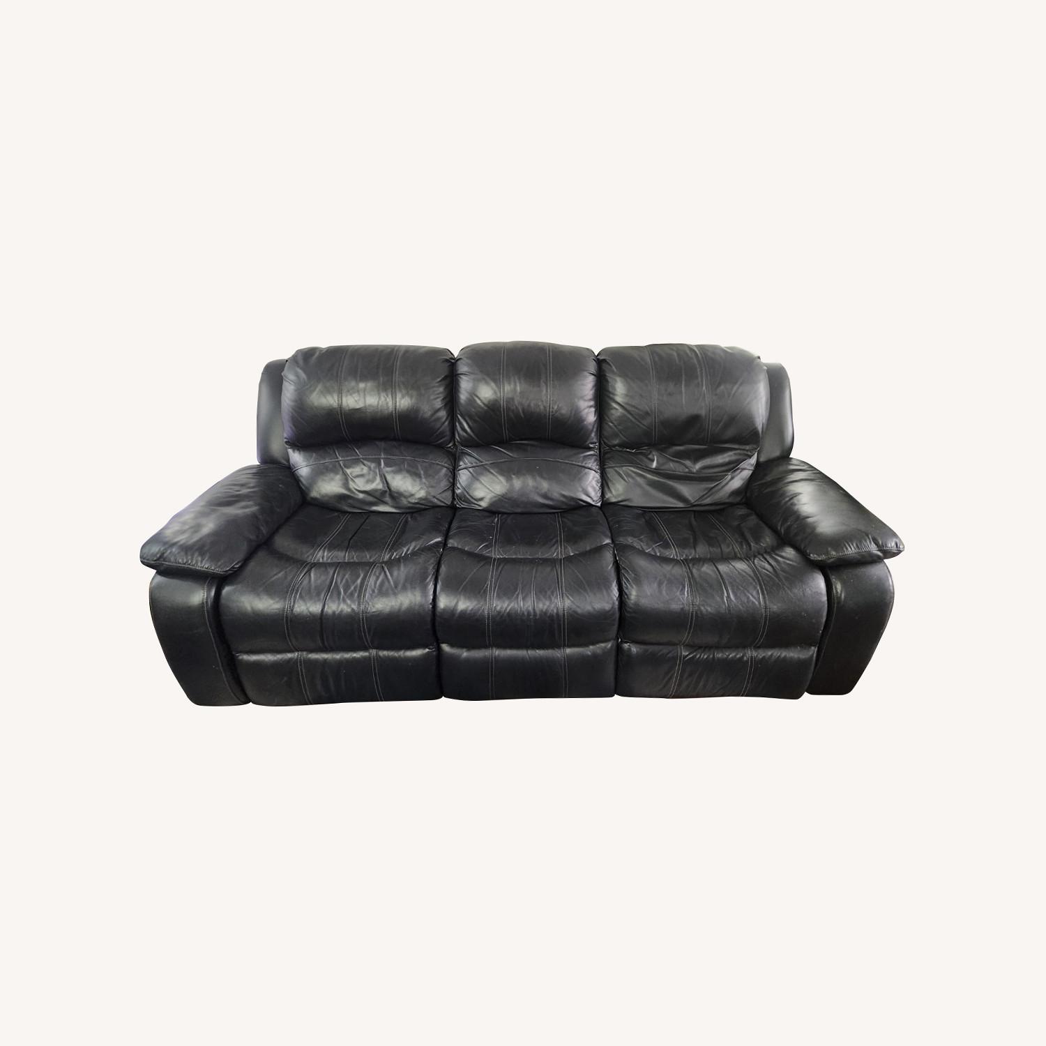 Raymour & Flanigan Black Genuine Leather Reclining Couch
