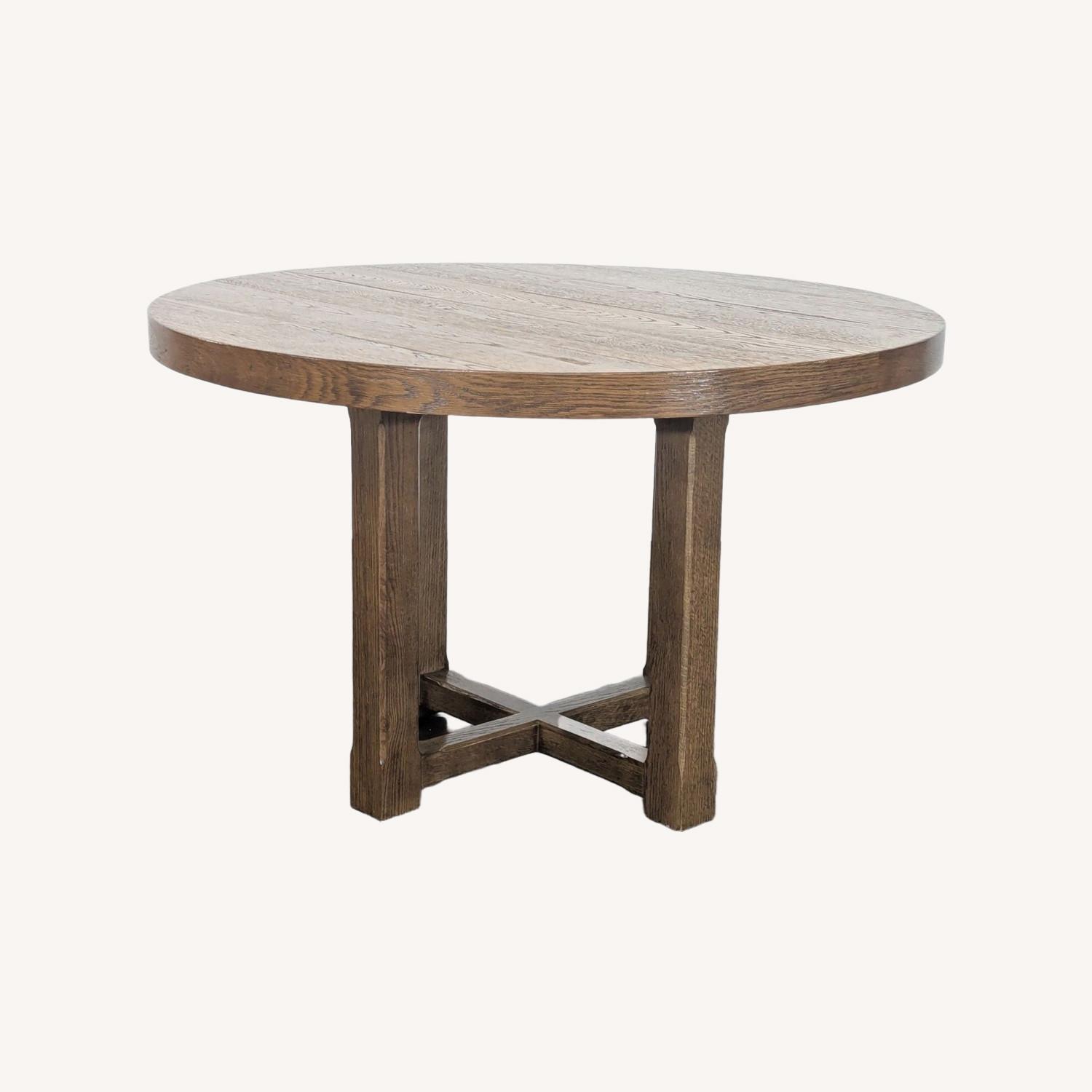 Seller's Notes:Designed by the Van Thiels, the table is crafted of American white oak veneers and hand-finished to highlight its rich grain. The wood is sandblasted, wire brushed, stained and waxed for a warm patina.