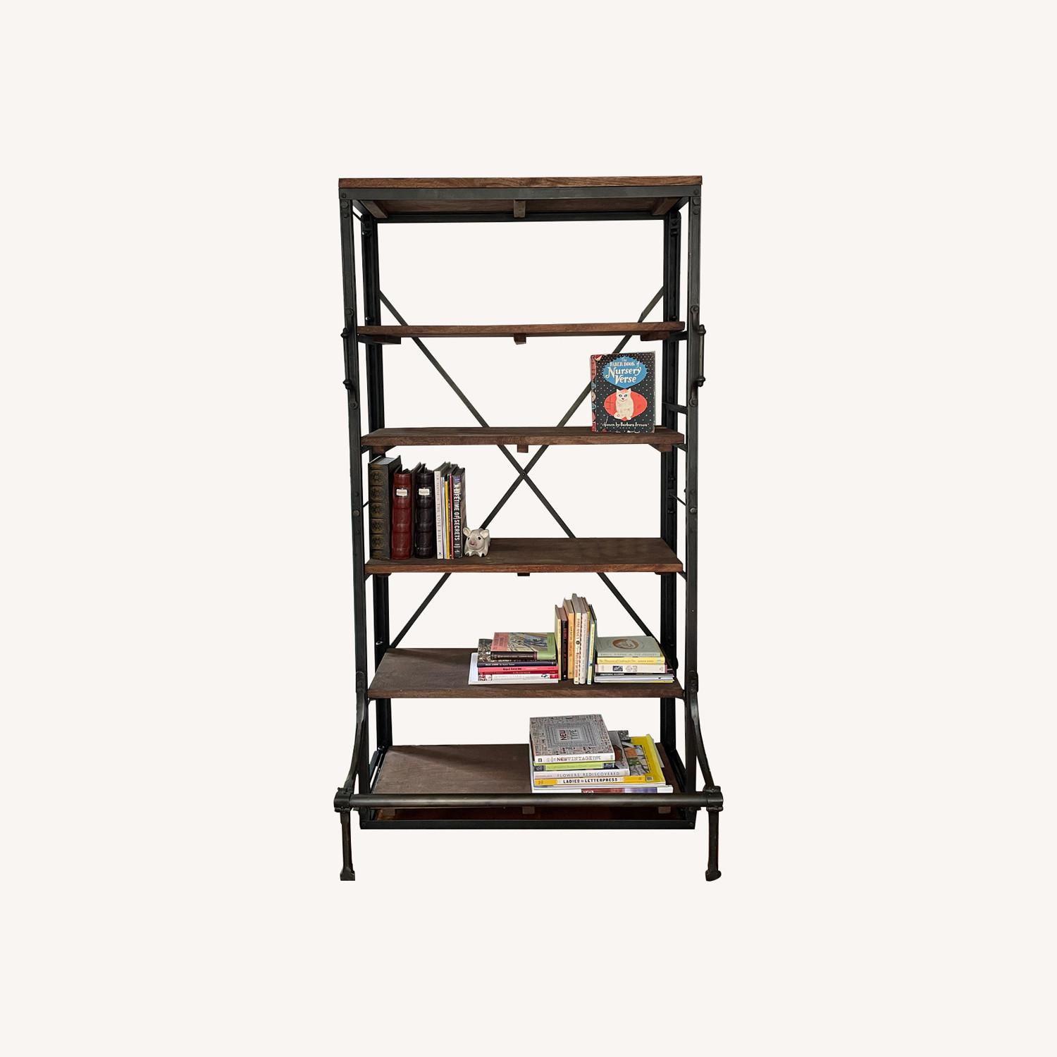 Seller's Notes:Restoration Hardware vintage industrial shelving unit. Reclaimed wood and and iron (antiqued bronze). The shelf unit both beautiful and functional. Additional dimension the depth is 13.75" at top and 24" at base. From the manufacturer: -Iron frame and X-shaped back support are aged to replicate an antique -Antiqued Iron finish features natural hardwood shelves that are credibly distressed; -This item is artisan crafted with meticulous care. Given its handmade and hand-finished nature, variations in the wood or metal work are to be expected and celebrated. Each item is unique and no two are exactly alike.