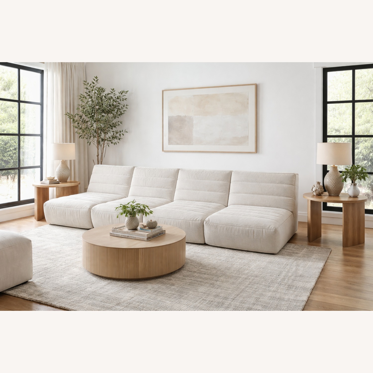 Seller's Notes:RH Chelsea Recliner Modular Armless Chair – Set of 4 in Performance Linen Weave (Natural, Luxe Depth)