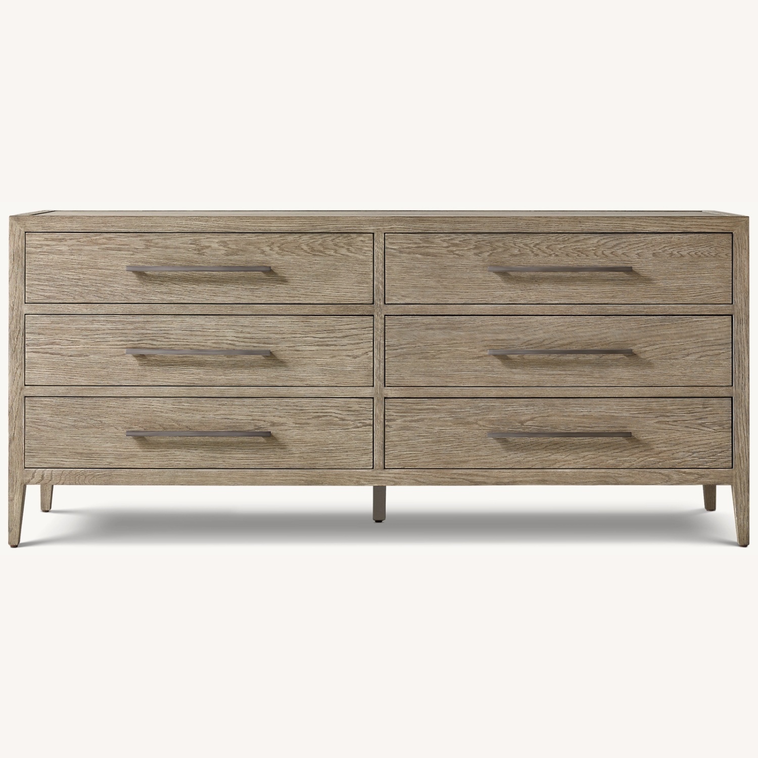 Seller's Notes:I bought this dresser 4 years ago, and it's great but I'm switching up my style. In great condition, the only blemish is on the top at the back there is a <1 inch surface scratch. It isn’t very deep, so you could buy the touch-up kit that RH sells and easily color it in, because the scratch is very shallow. Also selling matching bedside tables, bed frame, and lamps to go with it. Color is Brushed Grey Oak.