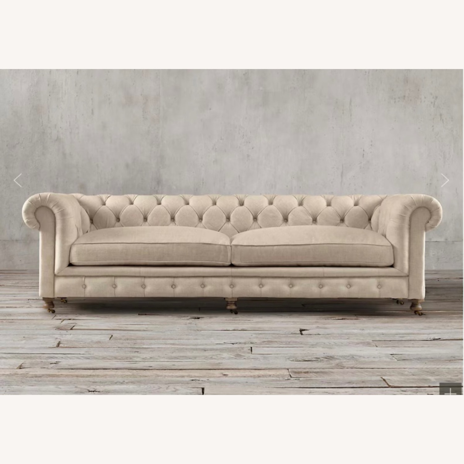 Seller's Notes:Restoration Hardware RH Kensington sofa (Chesterfield). The sofa hasn't been used for the past 5 years but has been in storage and we realize we won't be using it soon, there is no room for the sofa in our home. In storage it got 2 small blemishes on the left side.