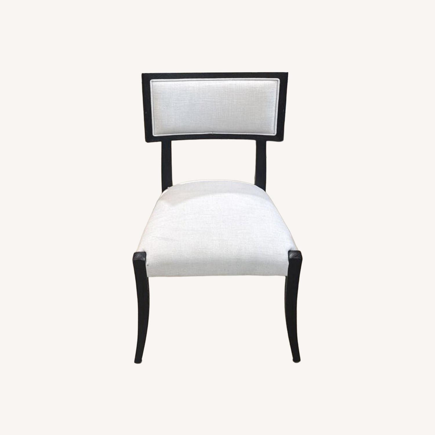 Seller's Notes:The Klismos Side Chair from Restoration Hardware is an elegant interpretation of a timeless classic. Inspired by ancient Greek design, it features a gently curved backrest and tapered, flared legs that create a sense of graceful movement and refined proportion. Upholstered in premium fabric or leather, the Klismos Side Chair offers both comfort and sophistication—its supportive seat and sculptural silhouette make it as inviting to sit in as it is beautiful to behold. The thoughtful craftsmanship and high-quality materials ensure durability and lasting style. Perfect for dining rooms, accent seating arrangements, or paired at a vanity, this chair adds a touch of classical charm to contemporary and traditional interiors alike—bringing understated elegance and sculptural presence to your space.