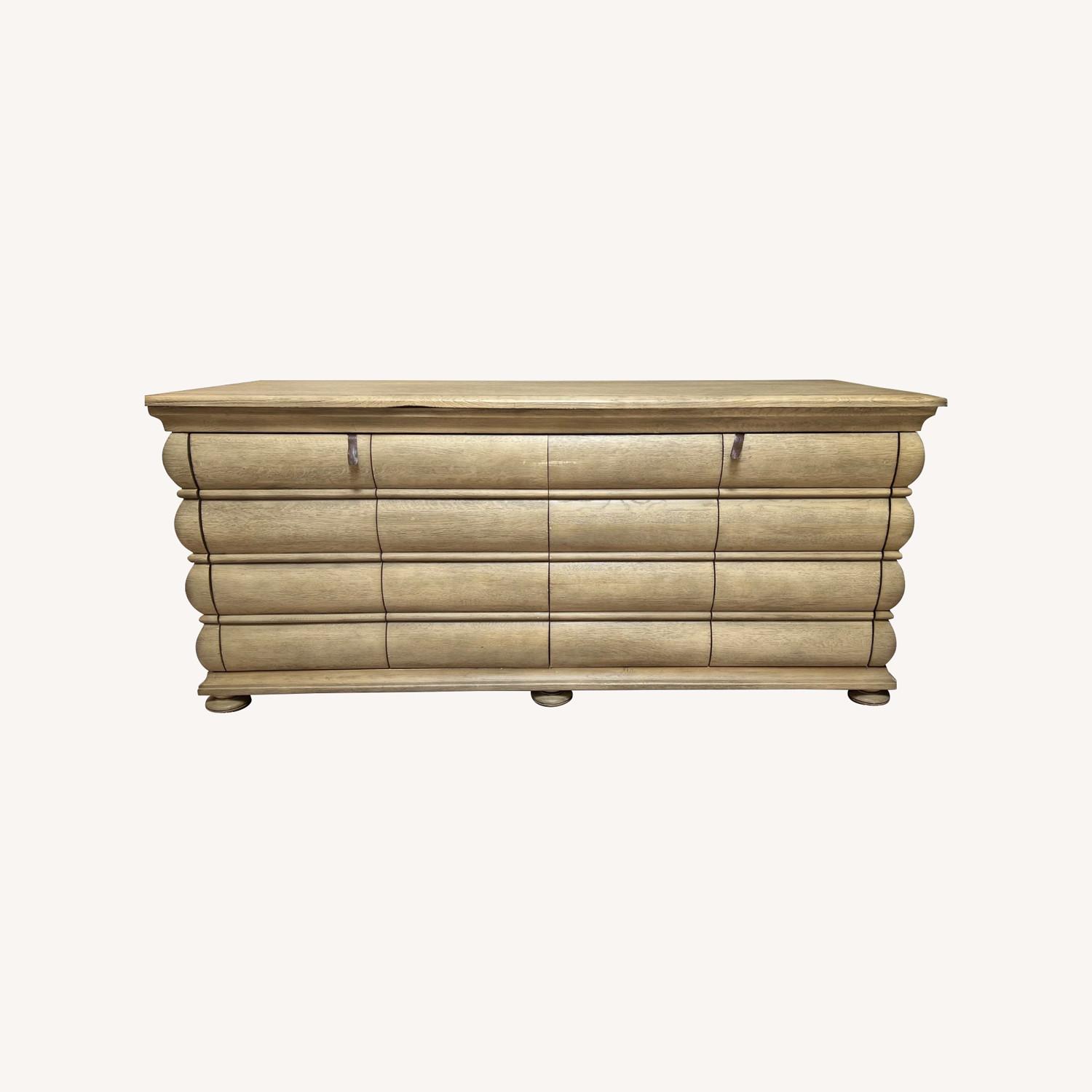 Seller's Notes:Elevate your space with this elegant 19th-century inspired cabinet from Restoration Hardware. Crafted from solid oak with a rich, natural finish, this low-profile piece showcases a graceful rounded silhouette and subtle antique details. Material: Solid oak wood with lightly distressed finish Style: 19th-century European, gently curved façade Features: Spacious interior storage, two cabinet doors with interior shelving, original RH hardware Condition: Excellent – minimal wear, no damage, smoke-free home Ideal as a media console, sideboard, or entryway statement piece, this cabinet combines timeless craftsmanship with Restoration Hardware’s signature design aesthetic.