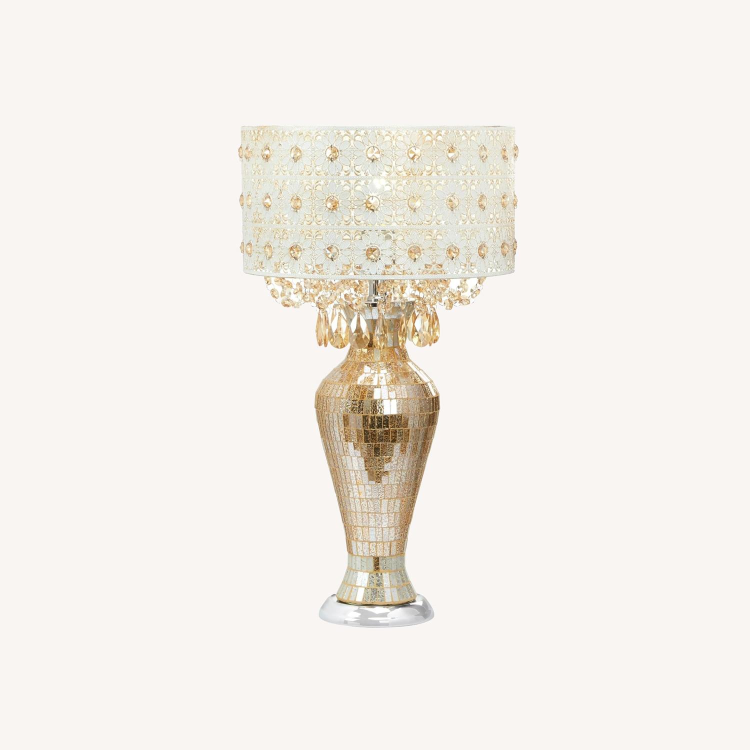 Collection: River of Goods Solvang Jeweled Metal/Mosaic Base Cascading Crystal Table Lamp - 14"L x 14"W x 25"H