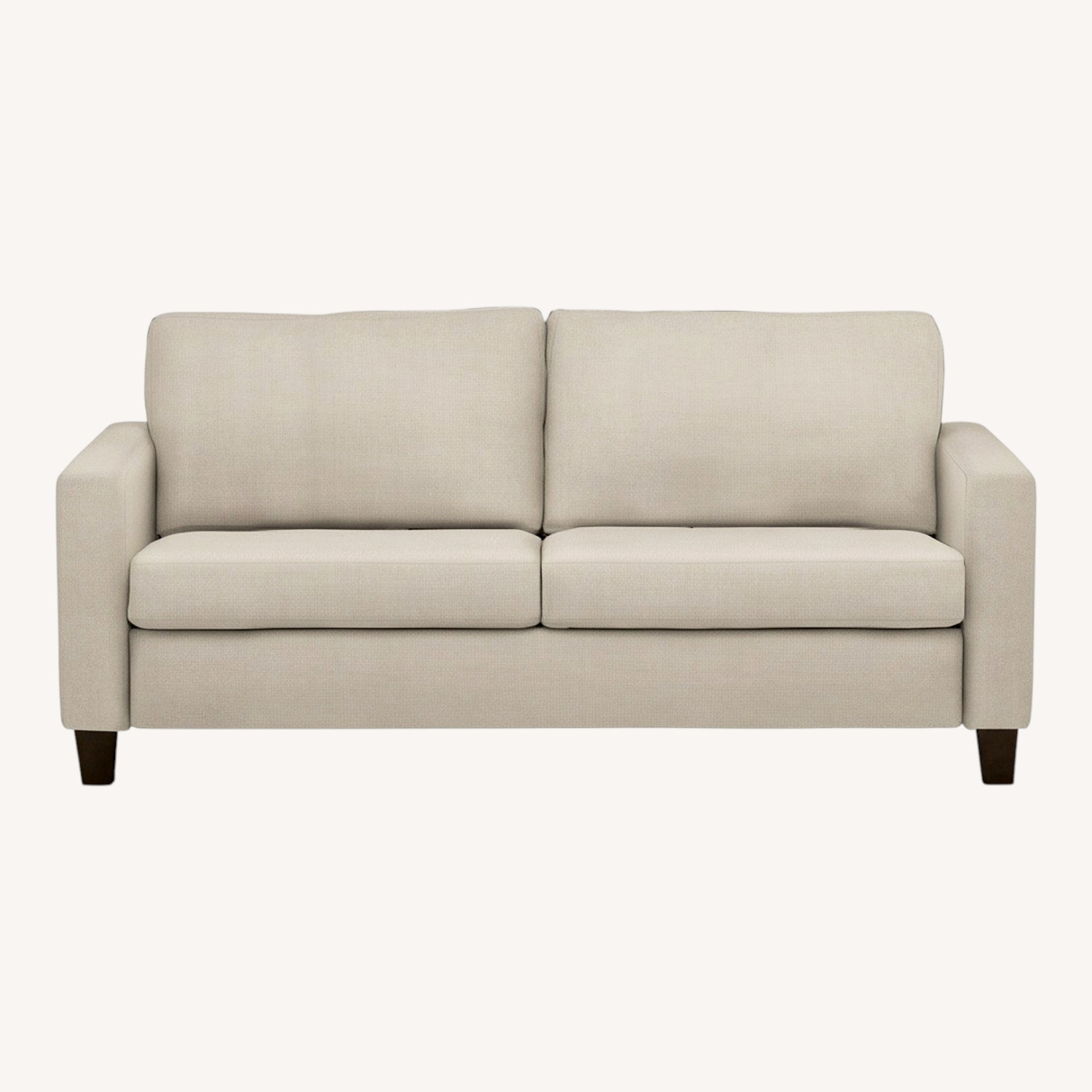 Seller's Notes:Has been primary couch in our living room since early 2016. Used as a nightly sleeper for some part of this time, with mattress topper on top of the sleeper cushions. Very comfortable according to those who have slept on it. Sleeper mechanism is easy to pull out. Small fabric tear around the mechanism only visible when sleeper is open. Barely visible small whitish stain on one cushion (has been cleaned). Some fabric discoloration from sun exposure (covered fabric areas are a little darker).