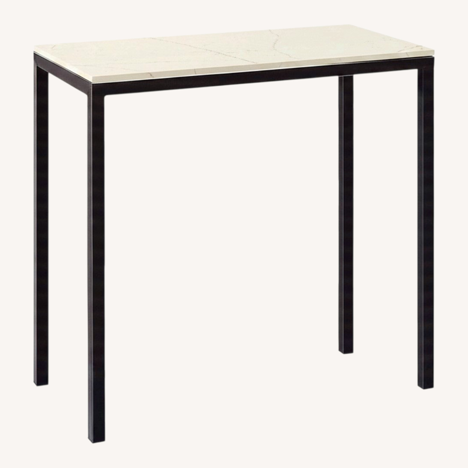 Seller's Notes:Room & Board Parsons Ceramic Metal Counter Table Perfect counter table or a tall dining table - top is white marble ceramic, legs are deep blue indigo powder coated steel. There are scratches on the legs though less noticeable unless you're looking for them - the top is in perfect condition and very durable.