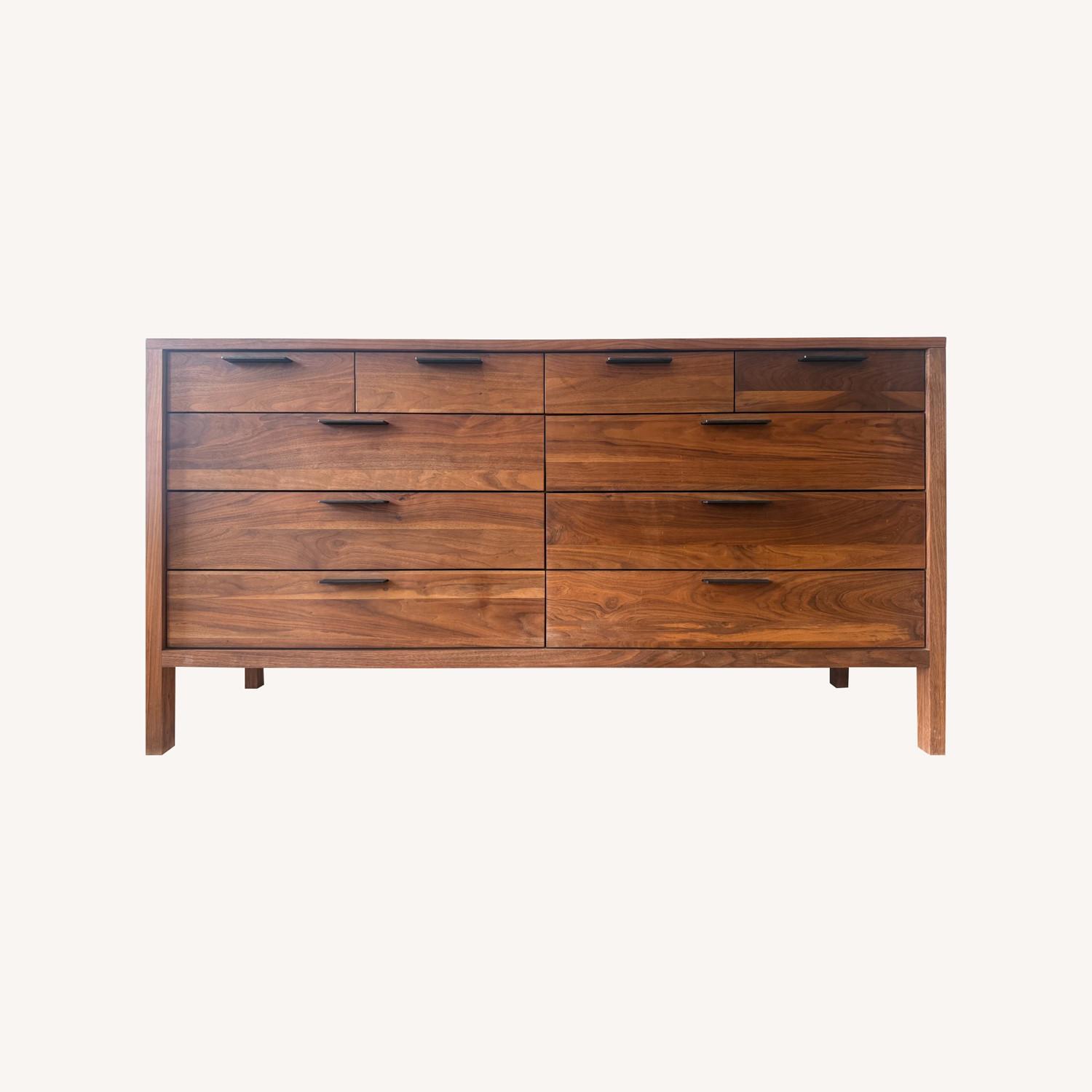 Seller's Notes:Room & Board Berkeley (previous design) walnut solid wood dresser. In great condition. Natural weathering of wood on top. Made in USA.