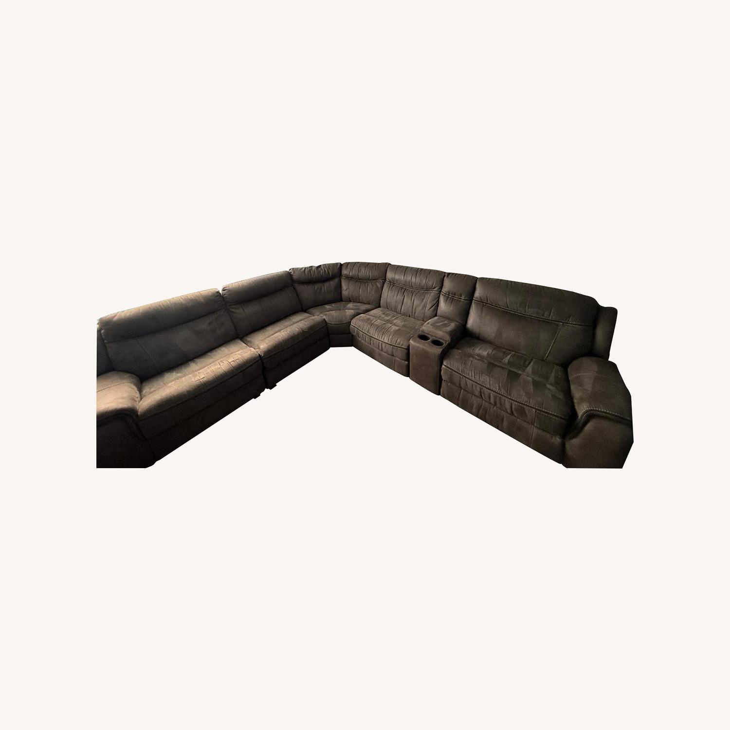 Seller's Notes:Comfortable and spacious power reclining sectional from Rooms To Go, perfect for movie nights or entertaining. This sectional features multiple power reclining seats, a built-in center console with cup holders, and plush, supportive cushions throughout. The modular design allows the sectional to break down into individual pieces for easy transport and flexible placement. Upholstered in a durable charcoal gray microfiber, it’s neutral, cozy, and works well in a variety of living spaces. Features: 2 Power reclining seats Built-in console with dual cup holders Modular sectional (easy to separate and move) Plush, padded cushions and armrests Charcoal gray microfiber upholstery Clean, well-maintained condition From a smoke-free home with no shedding animals This is a great option for anyone looking for a comfortable, high-quality reclining sectional at a fraction of retail cost.