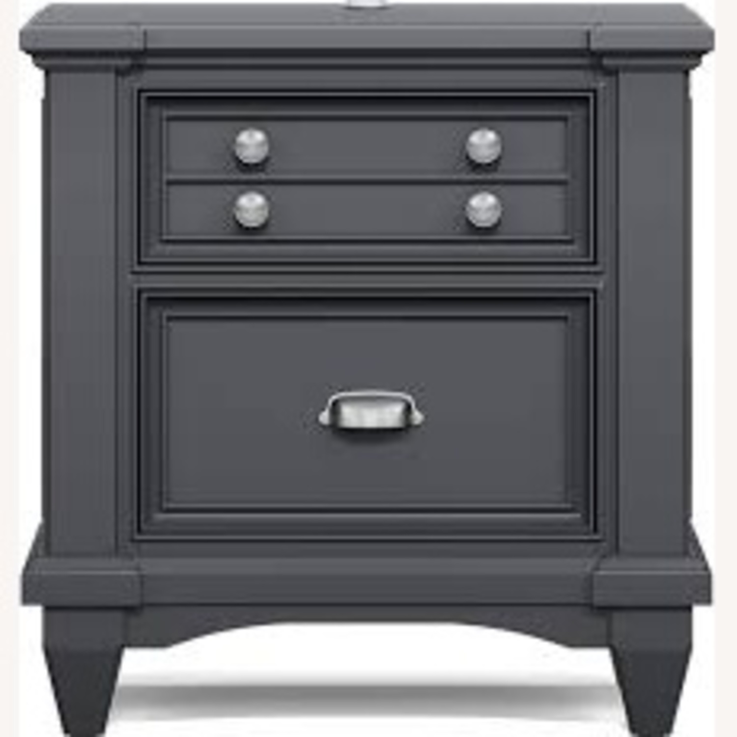 The charming Hilton Head nightstand is the perfect bedside companion for your child. Two drawers offer plenty of bedside storage and maintain a stylish appearance with metal hardware in an attractive nickel finish. The clean graphite finish makes this piece a must add to any kids' bedroom. Two built-in USB ports make sure the ability to charge devices is always available.