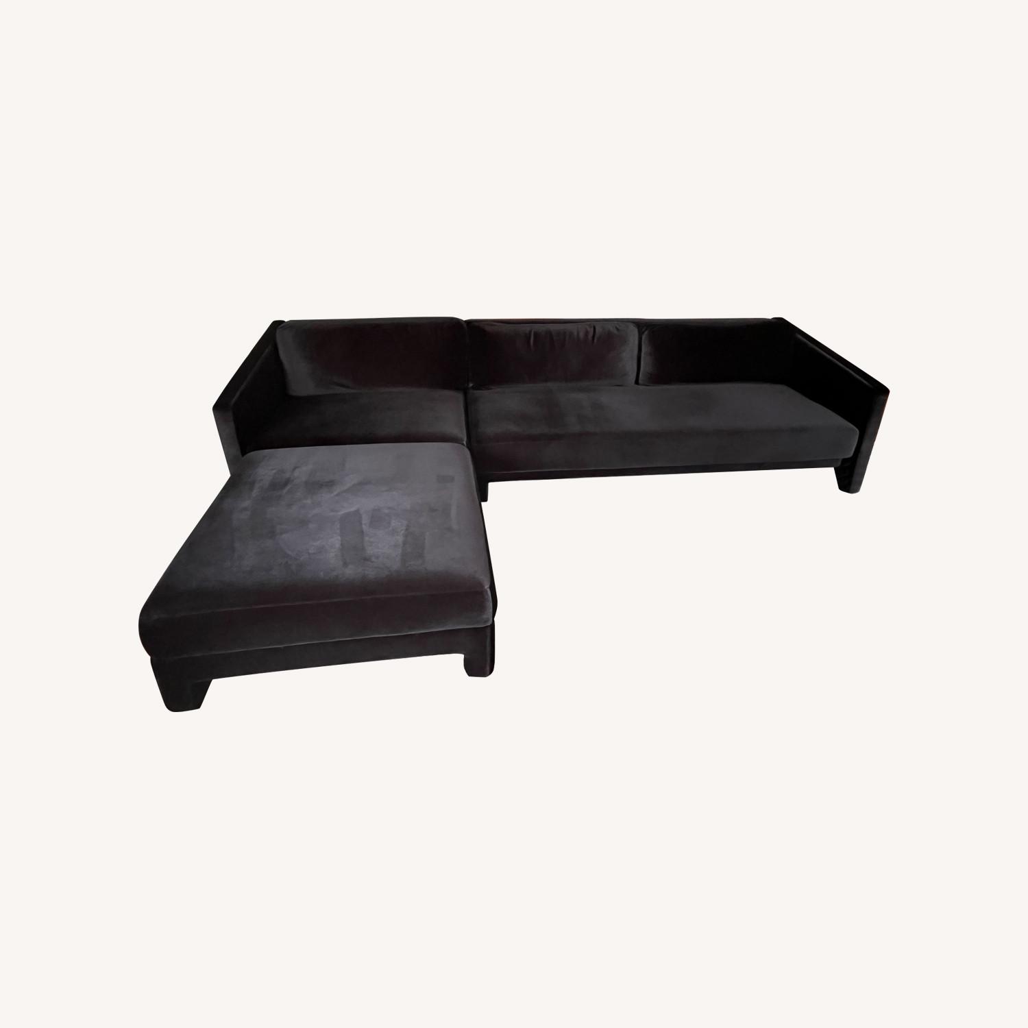 Seller's Notes:This sleeper sofa is sleek, modern and easy to convert into a queen sized futon. The chaise portion stays intact while the remaining couch unit can fold out into a sturdy and comfortable futon sleeper. Cushions are down filled. Feet are brushed steel. Couch fabric is very liquid repellent. Note that tiny stain from a drop of nail polish remover is not a discoloration but more of a texture change (about .05 cm), unnoticeable unless you run hand over specific spot.
