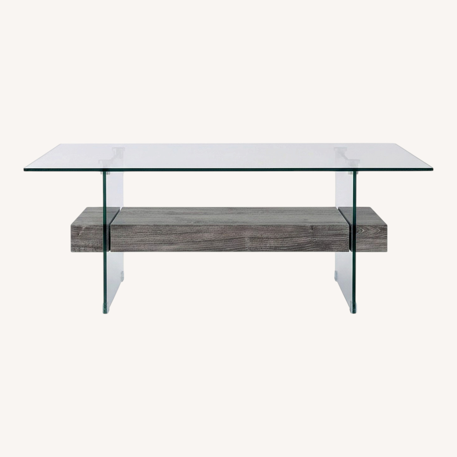 Seller's Notes:The epitome of elegance, this modern Kayley Coffee Table was inspired by the display tables in London’s Tate Museum. Ideal for the living room, hall, or foyer, Kayley’s clear glass frame is given dramatic intrigue with a rustic wood shelf in a black oak finish.