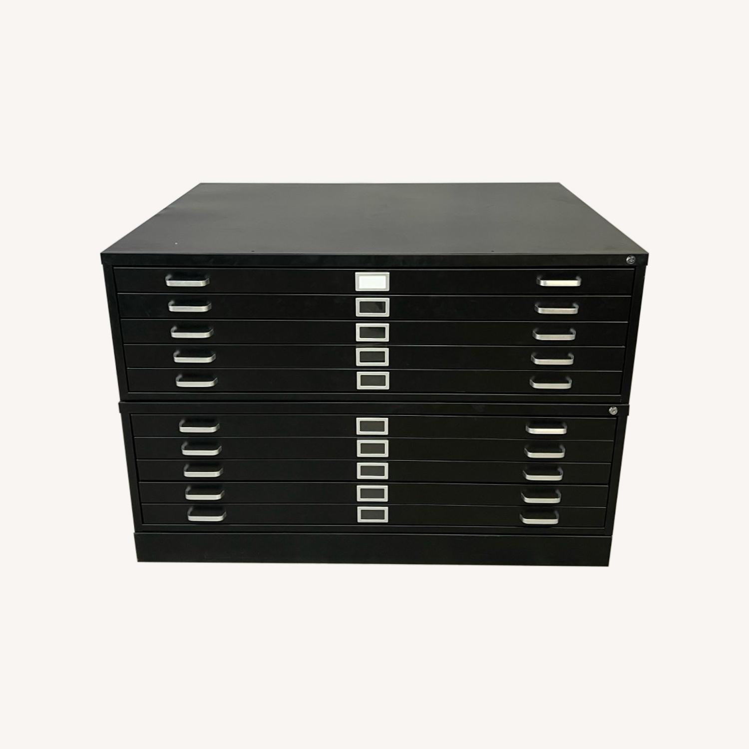 Seller's Notes: Safco Steel Flat Files 10 Drawer Organize and preserve your most important documents with this professional-grade flat file cabinet. Featuring ten spacious drawers, this steel construction provides robust protection for blueprints, architectural plans, artwork, and large-format documents. The smooth-gliding drawer mechanism ensures effortless access, while the durable steel frame guarantees years of reliable performance. Ideal for design studios, offices, and creative workspaces, this filing solution combines functionality with industrial elegance. Dimensions and weight capacity accommodate standard and oversized materials with ease.
