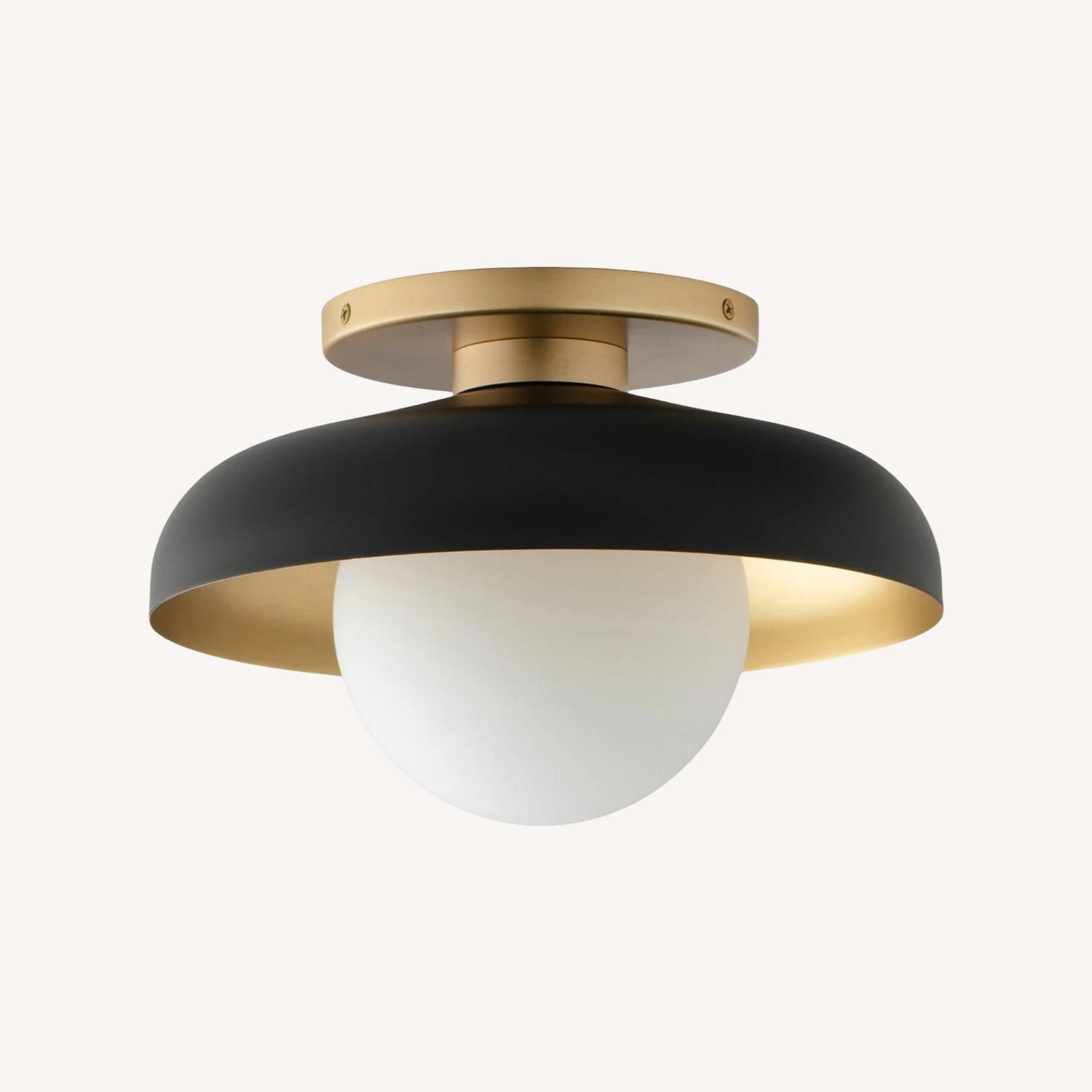 Seller's Notes:The Caldera 9” Flush Mount is utilitarian lighting at its finest. Designed by local Portland studio FOLK, it has a low-profile shade that directs light down, all while a hand-blown glass diffuser softly sends light outward. The natural brass detail is the finishing touch of this enduring design. Crafted from brass, steel, and handblown glass. Shade painted and finished in our Portland, Oregon factory. Bulb Included: 4W dimmable LED bulb, G9 base, 350 lumens, 2700K warm white color temperature